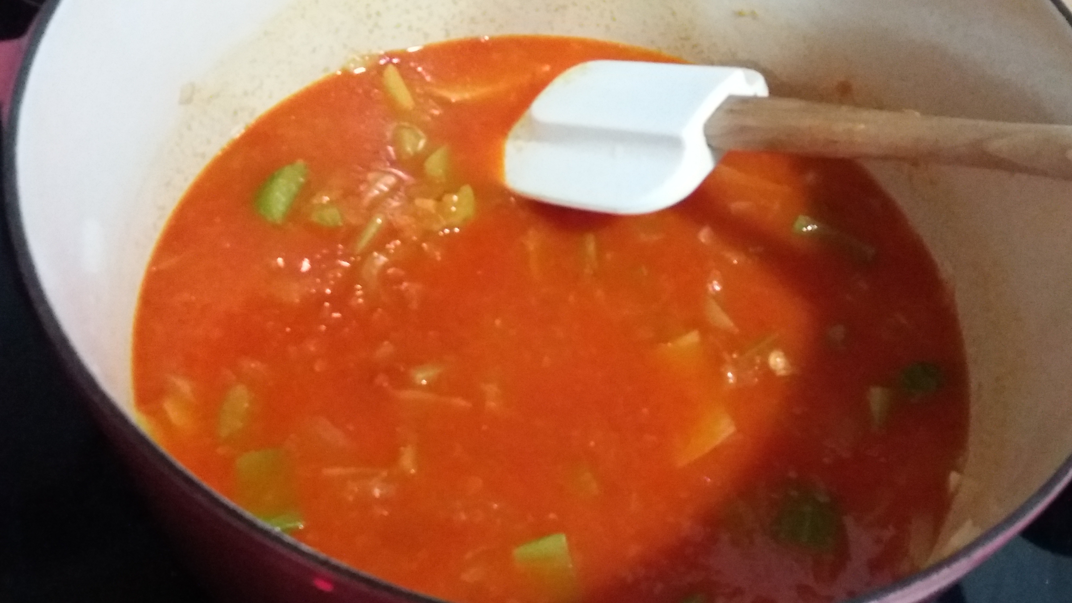 Pasado ese tiempo, añadiremos la salsa de tomate, y un buen chorro de vino: