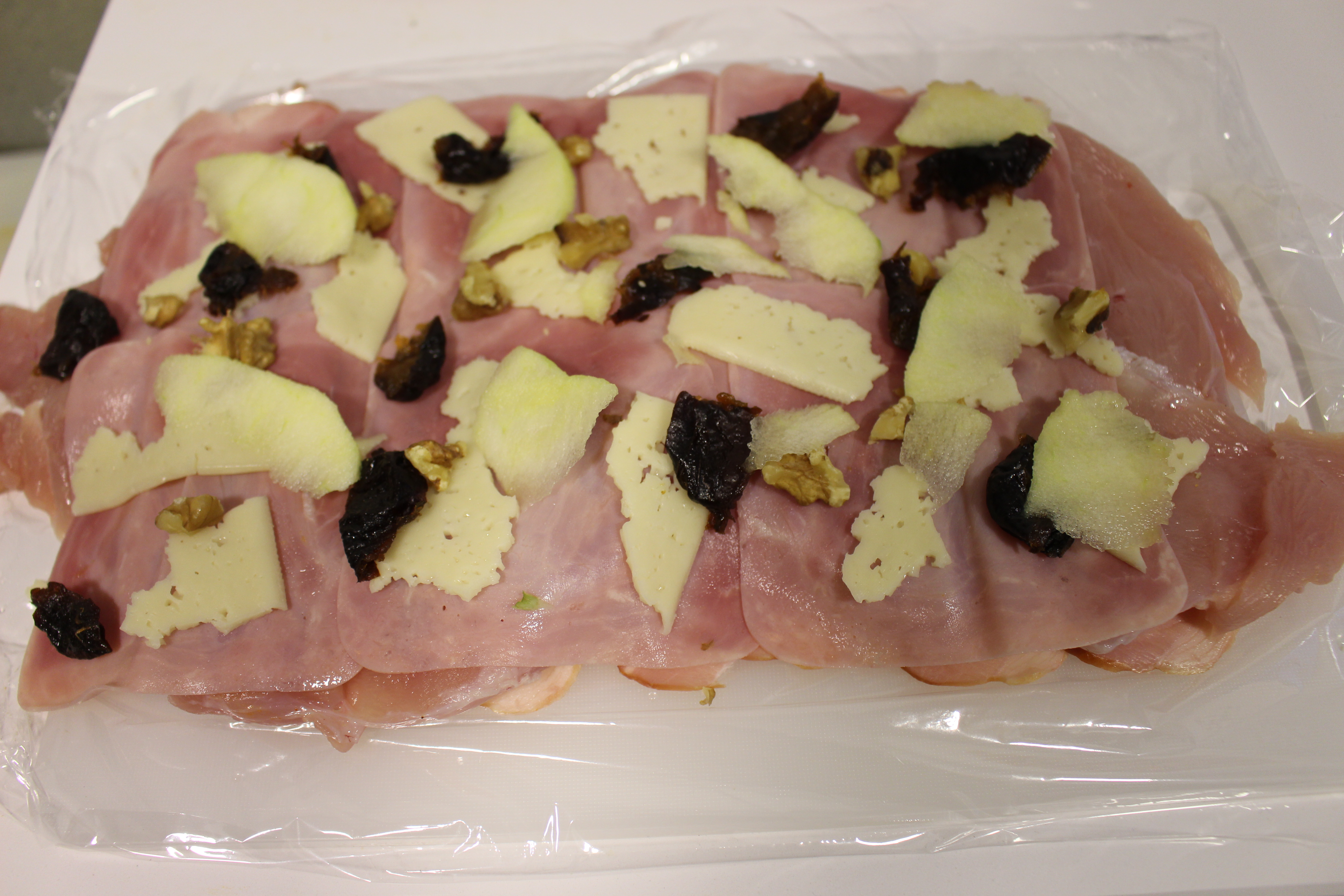 Me la enseñaron en un curso de Thermomix al que acudí este verano junto con otras muchas elaboraciones y fue mi favorita! Se trata de un fiambre de pavo relleno como el que venden en muchos establecimientos, pero sin ese porcentaje tan alto e innecesario de conservantes, potenciadores del sabor, etc.