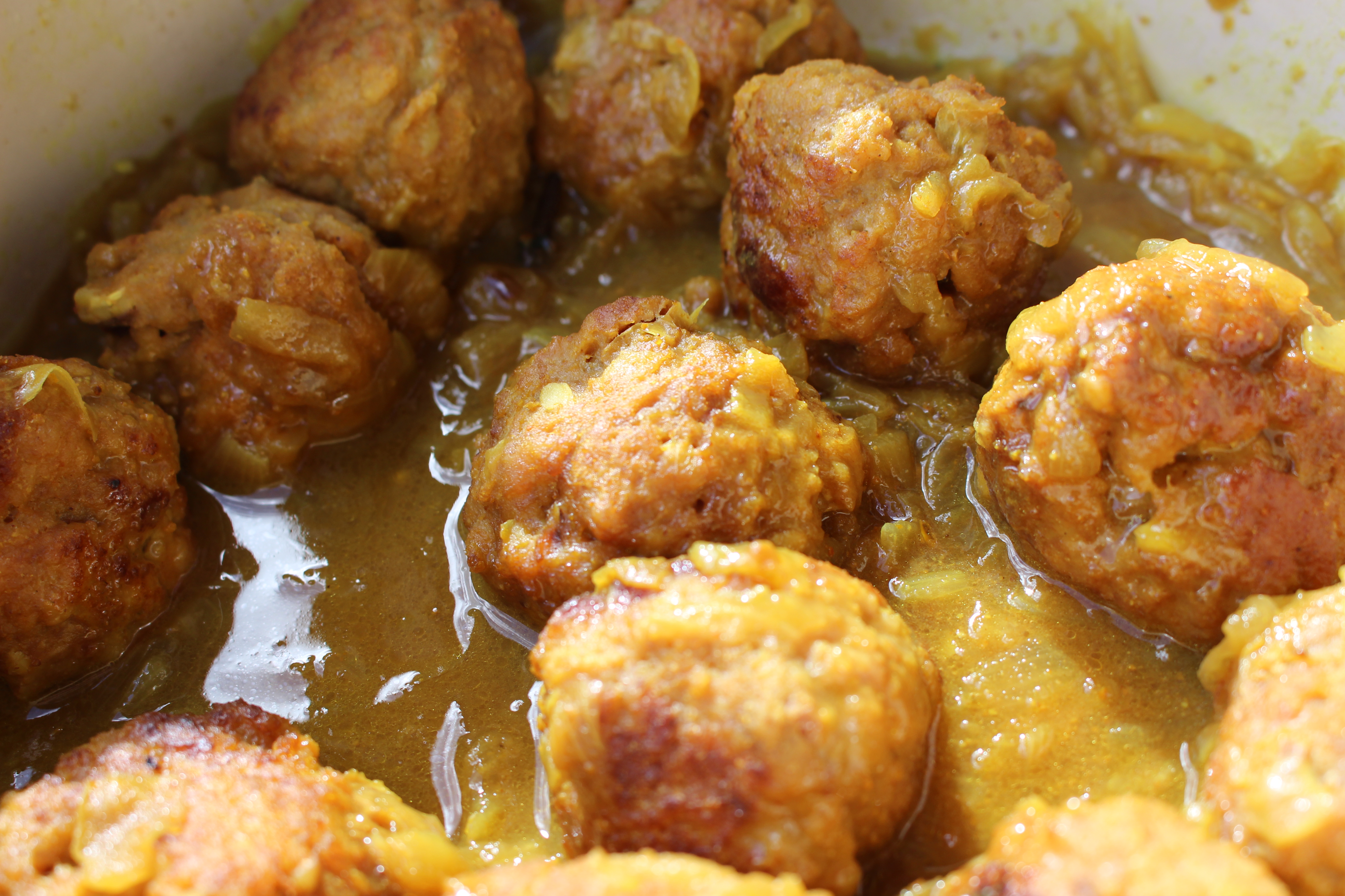 En este caso estas albóndigas han sido un gran descubrimiento. Me he inspirado en un receta del libro del chef estrella michelín Atul Kochhar que os comenté que me regalaron por mi cumple y que he empleado ya en varias ocasiones 🙂 . En la India y en general en Oriente Medio, las albóndigas se llaman «kofta», y se diferencian de «las nuestras» básicamente en que no son necesariamente redondas (a veces son más alargadas), y en que las cocinan en caldo (las hierven). Como siempre, he hecho mis adaptaciones a la receta para hacerlas más sencillas y menos «raras» para nuestro paladar.