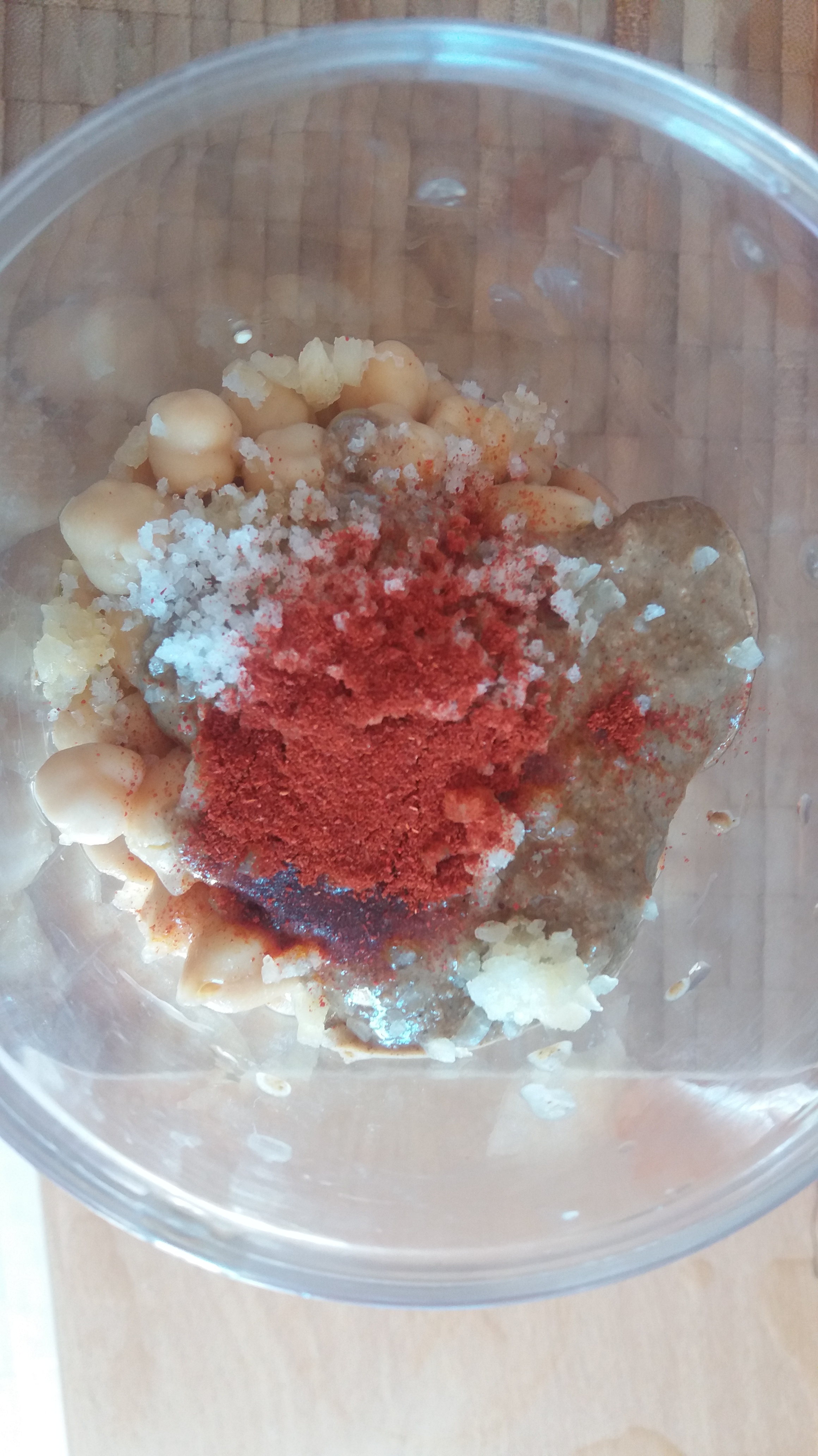 El hummus clásico es más fácil y rápido aún de preparar que el de guisantes, ya que en este caso utilizaremos garbanzos cocidos (de bote) y por tanto no necesitamos más que una batidora y 5 minutos!!!