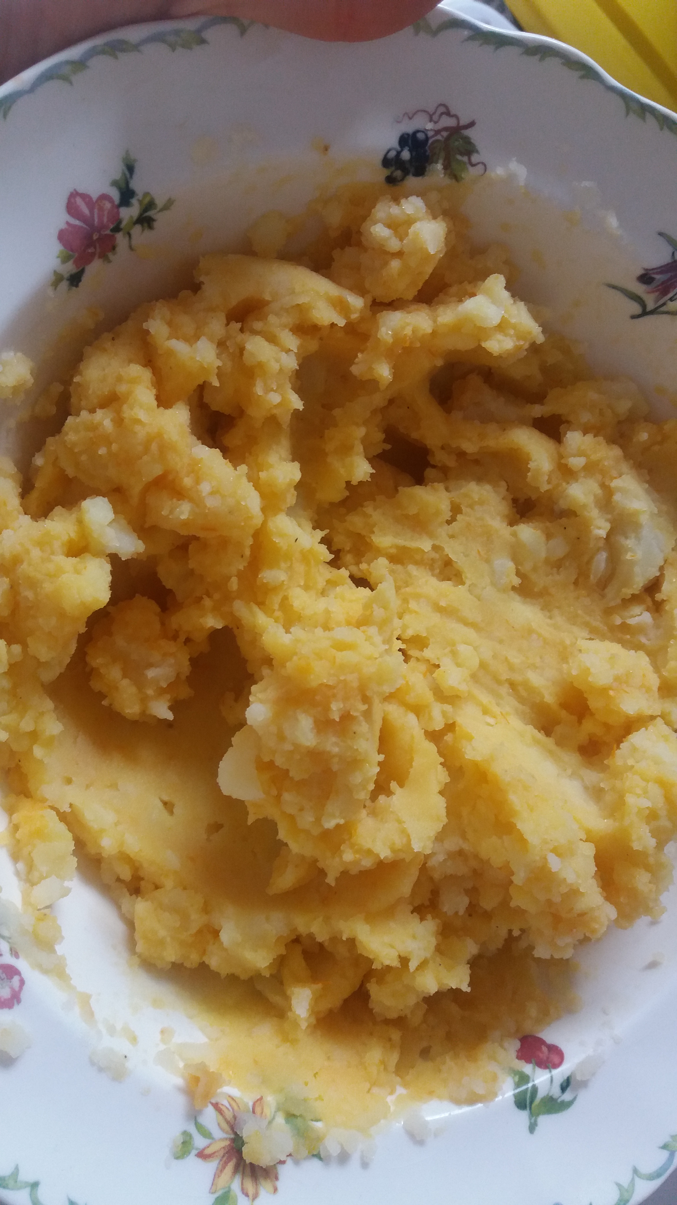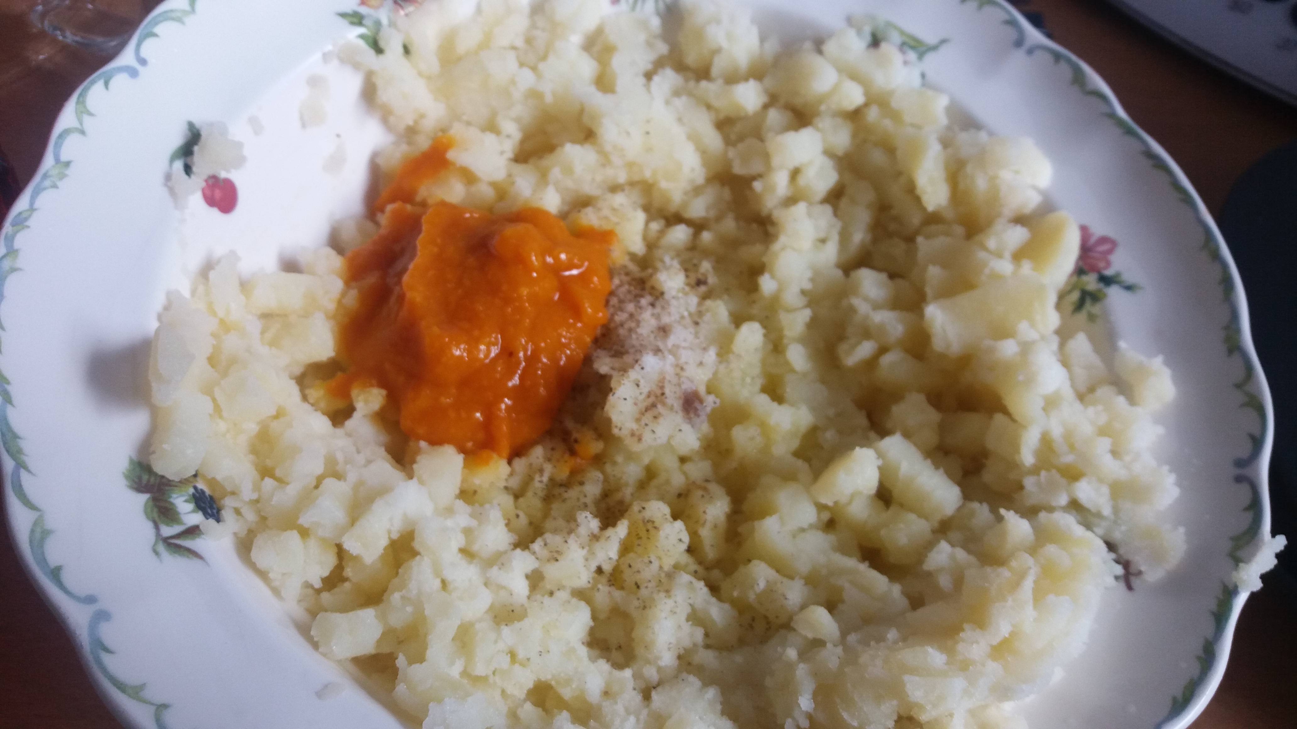 Cuando terminen de cocer las patatas, las pelamos con cuidado de no quemarnos y las pasamos a un bol grande. Las machacamos bien (si tenéis el utensilio aplastador, genial, si no con un tenedor) y agregamos una pizca de sal y pimienta, un chorrito de aceite de oliva, una cucharada de pasta de ají y el zumo del otro medio limón. Mezclamos muy bien: