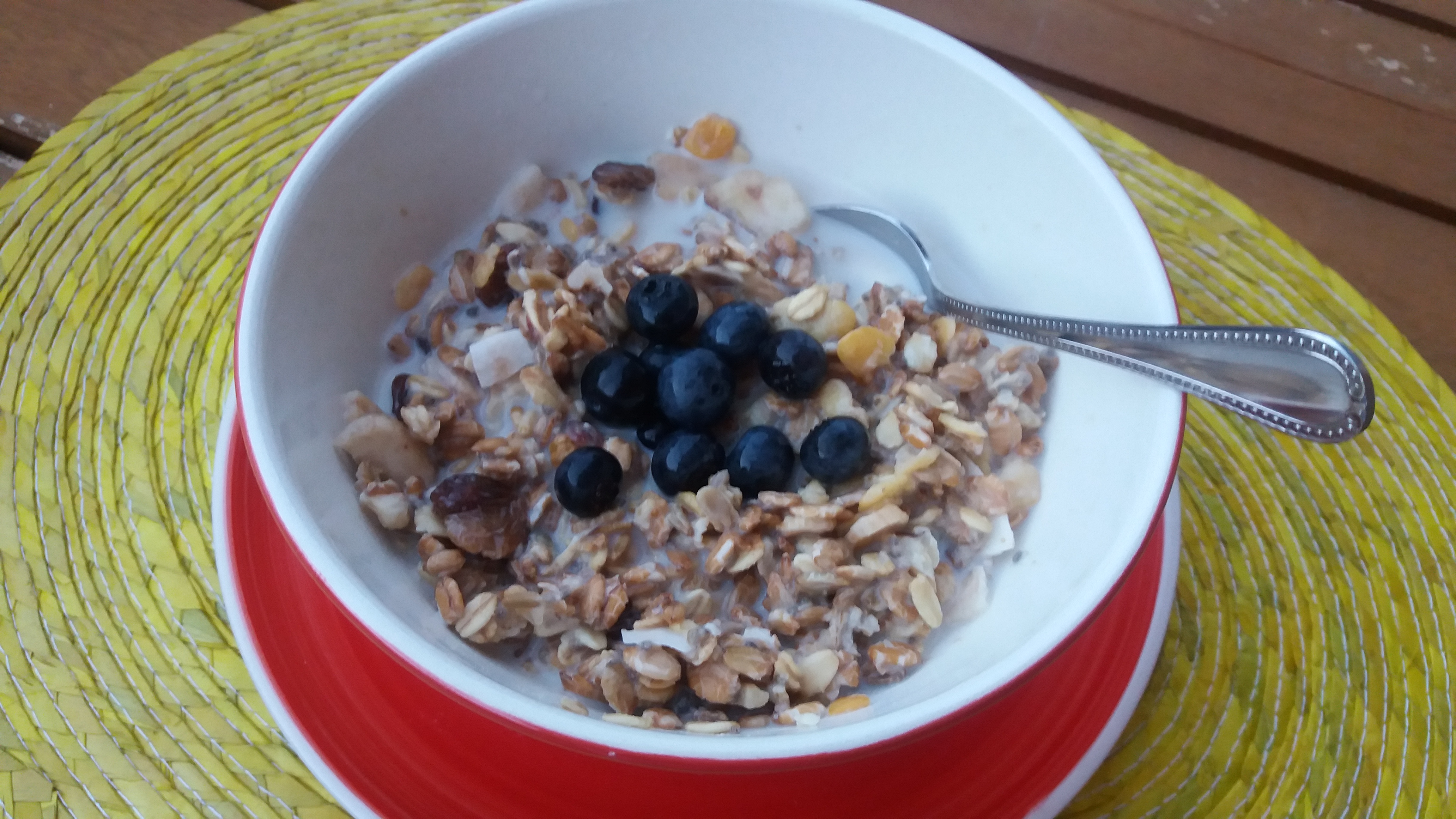 Se trata de una receta que se prepara con el típico muesli alemán, el que viene en un paquete de plástico transparente, con copos de avena gruesos y algunas frutas y frutos secos en su interior… Mi favorito sin duda es el de Mercadona, que es de origen alemán. La base es esa, y después vamos a darle un toque que lo transforma de ser un desayuno no muy rico a ser lo más sabroso que he probado en mucho tiempo! Además, tiene tantos ingredientes energéticos que te mantiene con fuerzas y sin hambre toda la mañana.