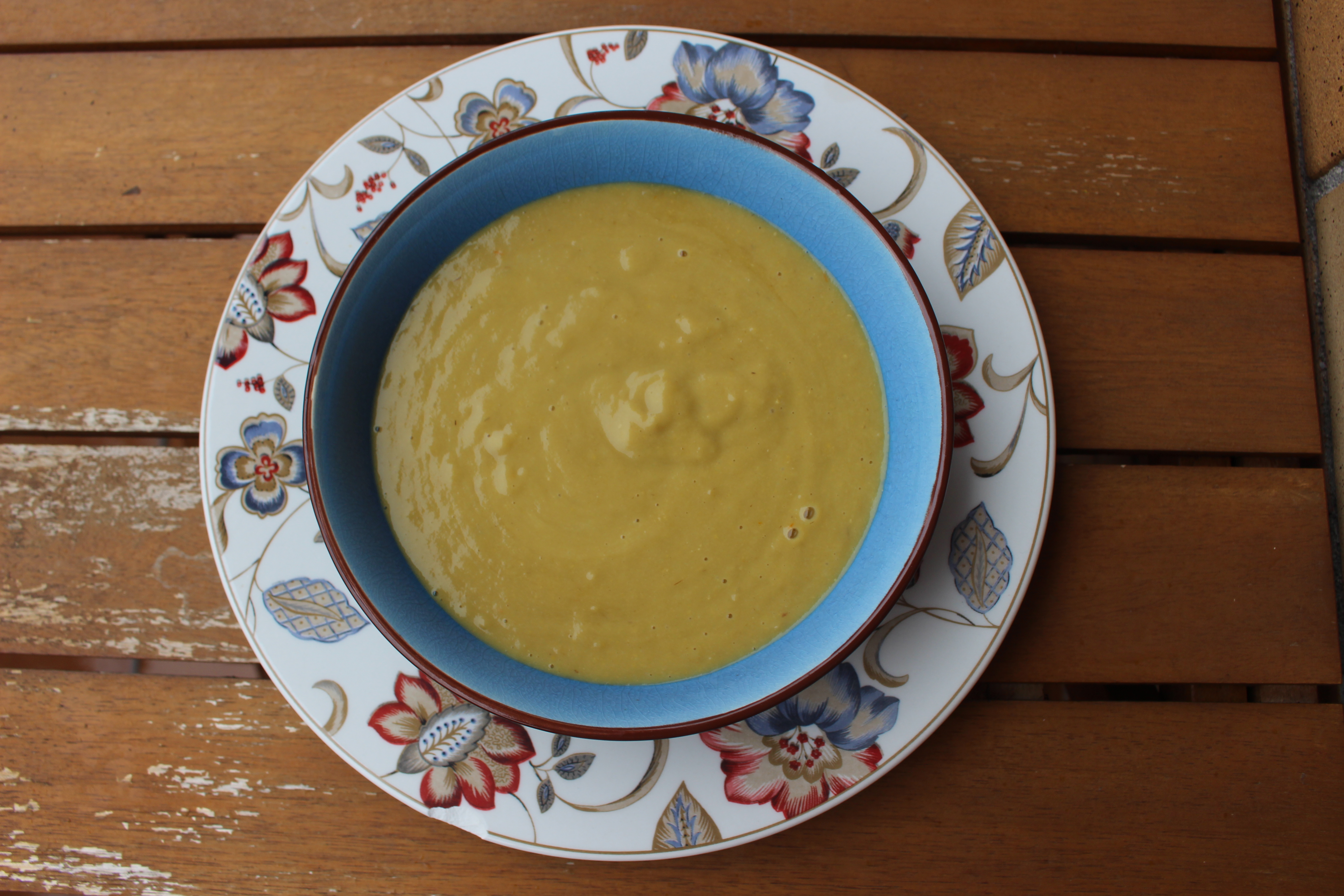 Empezamos semana con una crema deliciosa deliciosa… Es una invención mía inspirada en un aperitivo que nos dieron recientemente en el restaurante Amazónico de Madrid (una pasada de sitio, con una decoración espectacular y una carta súper original!!!). La probamos y tardamos un rato en identificar sus ingredientes: «mmm qué bueno, esto sabe a vichysoisse osea que llevará puerro y patata», «me sabe al ají de gallina, luego llevará ají», y la verdad es que lo del maíz lo dedujimos porque nos lo presentaron como esto es una «cremita de maíz» jejeje.