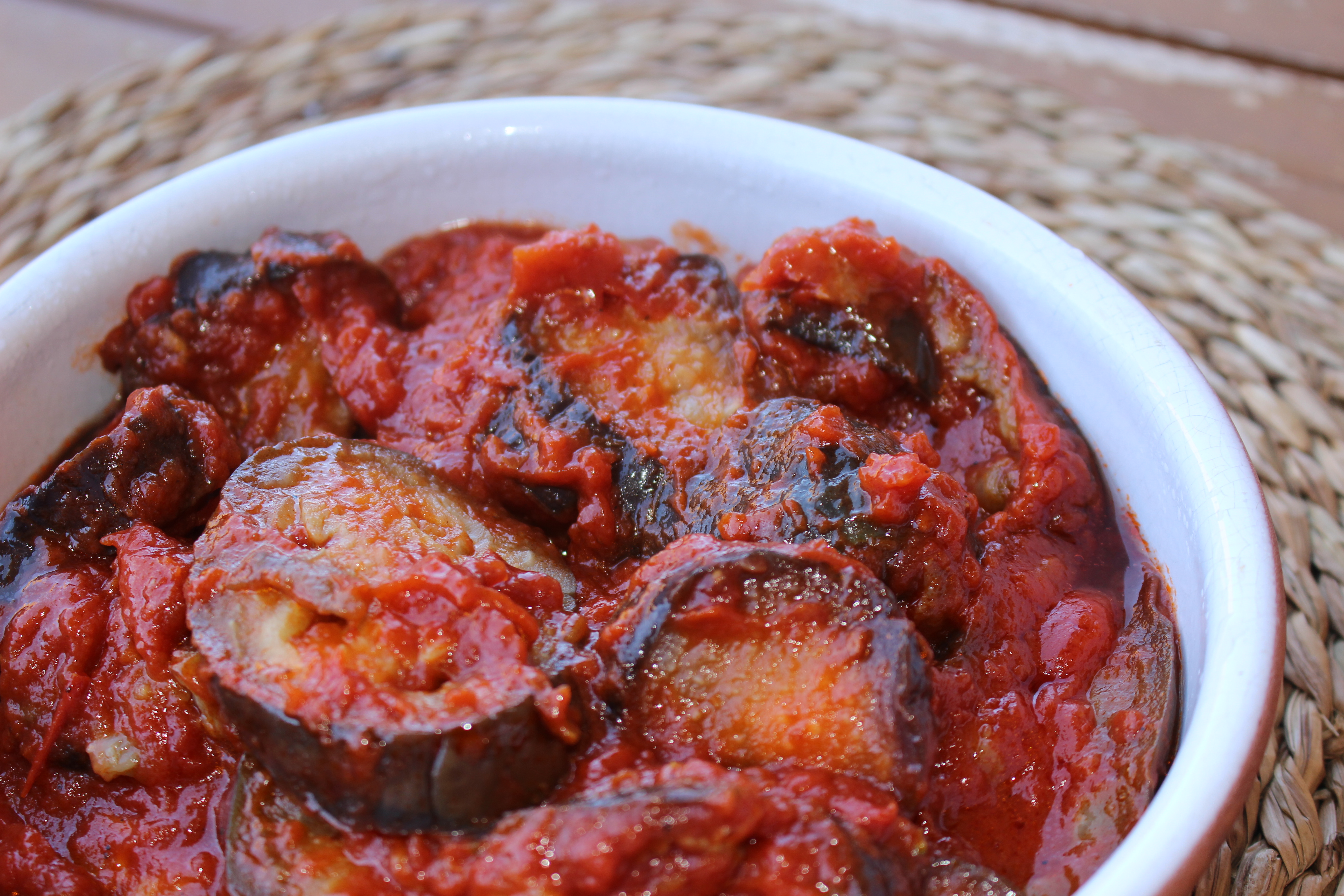 Berenjenas con tomate (extratiernas pero no grasientas)