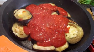 Damos la vuelta a las berenjenas y repetimos lo anterior: agua, fuego medio, tapar.