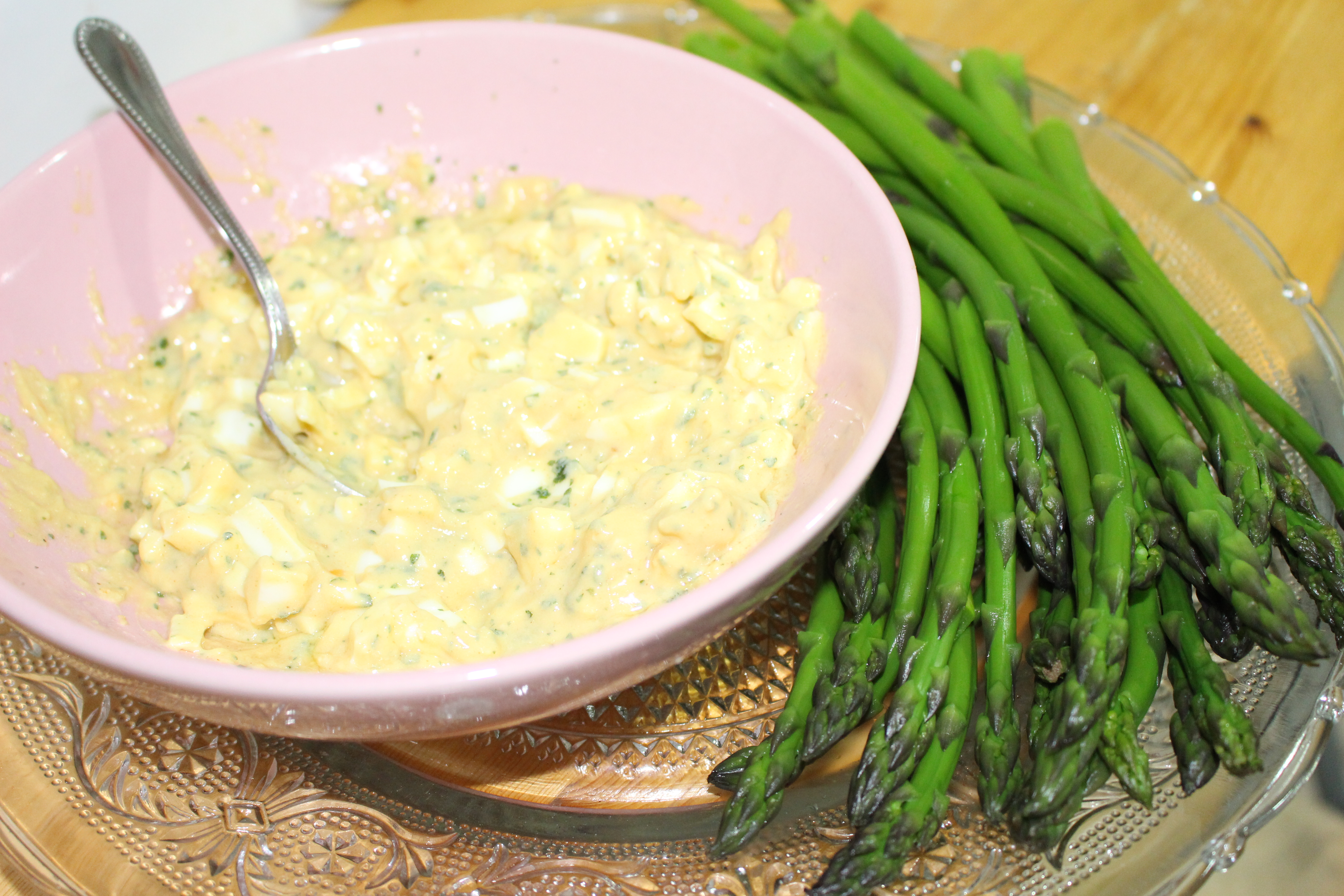 Servimos en una fuente o bandejita los espárragos bien escurridos, y la salsa en un cuenquito el lado. Delicioso!!!