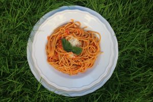 Si no conocéis el plato, es una pasta picante con salsa de tomate y ajo.