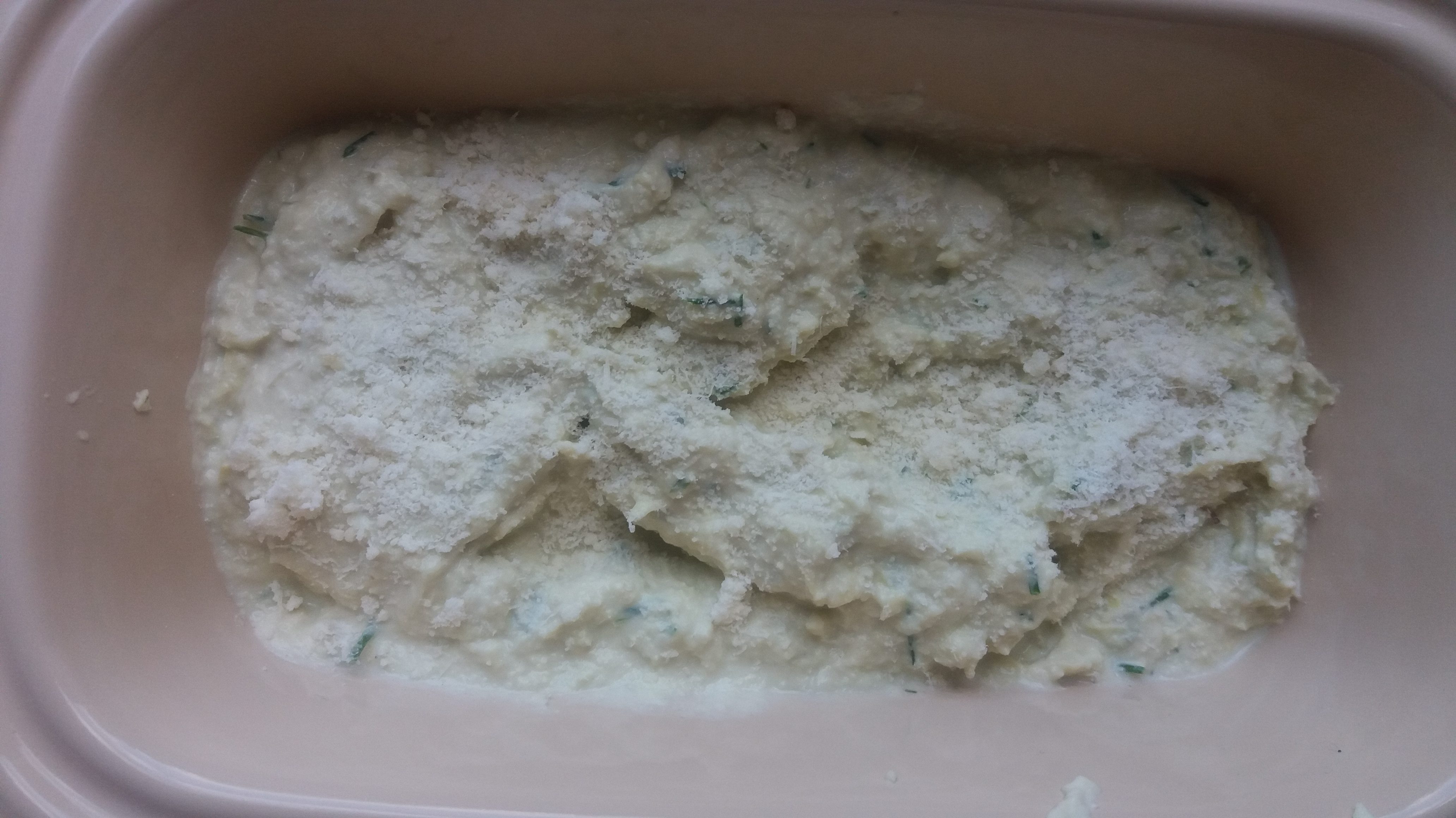 Pasamos la mezcla a una fuente apta para horno y espolvoreamos con un poco mas de parmesano (para que gratine bien y quede doradito).