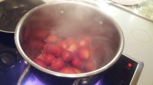Colocamos la fruta en un cazo y lo ponemos a fuego máximo .