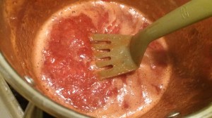 Cuando empiecen a calentarse, bajamos a fuego medio-fuerte y vamos aplastándolas con una espumadera para facilitar que salgan sus jugos. Lo que buscamos es que suelten jugos para que éstos se evaporen, el sabor sea más concentrado y, al tener menor contenido en agua, tenga mayor duración la mermelada resultante.