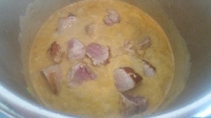 Agregamos la leche de coco (si al abrirla está separada la manteca del agua NO os preocupéis!) y dejamos 3 minutos más a fuego bajo: