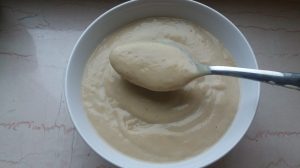 Una vez hecha la coliflor y cebolla, las trituramos en nuestra mejor batidora junto con todos los demás ingredientes de la salsa.