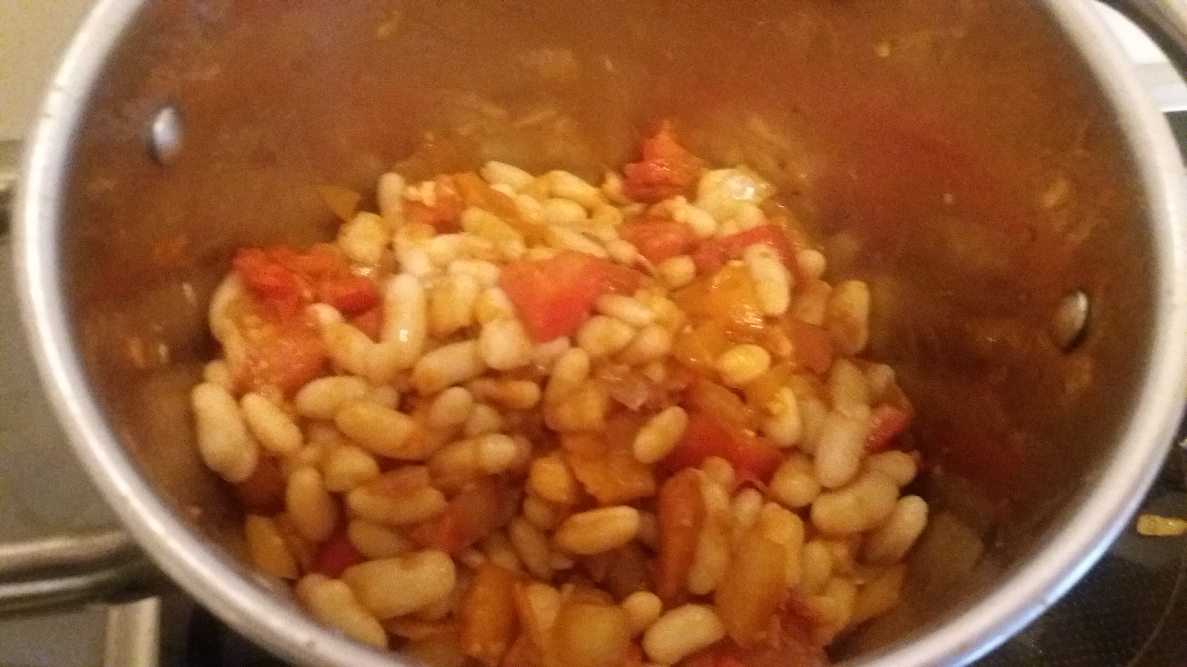 Ingredientes (para 3-4 raciones – poned otro bote de alubias si queréis que salga para otras 3):