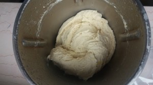 Si la hemos hecho en thermomix, tenemos que sacarla del vaso (ojo, es pegajosa, no os desesperéis…) y guardarla en un recipiente tipo tupper o una bolsa de congelados durante al menos 30 minutos hecha una bola. Si veis que os cuesta mucho, sacad las cuchillas de la thermo.