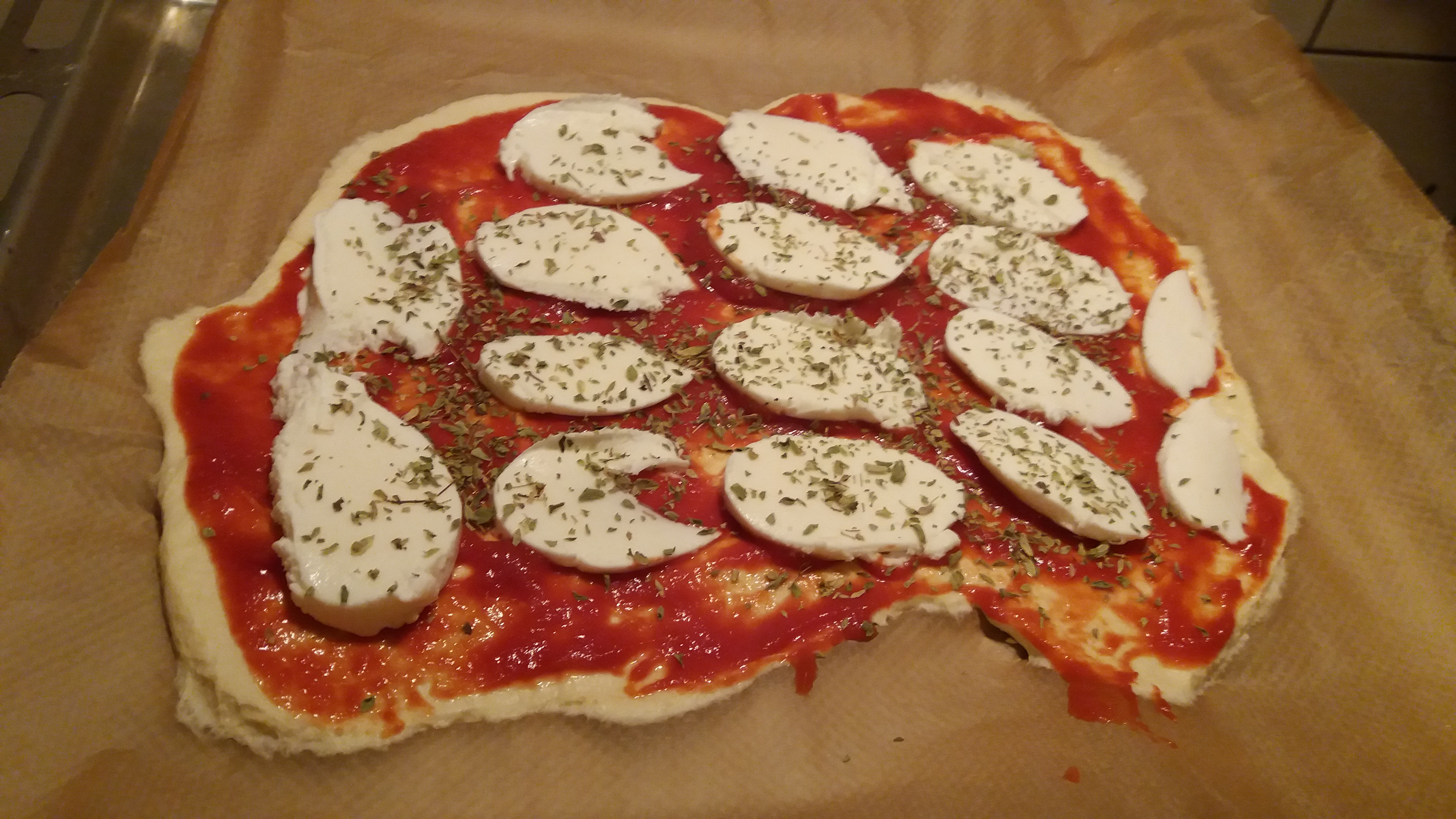 A partir de ahí, el “lienzo” es vuestro. Podemos ponerle lo que se nos ocurra, nosotros hicimos una margarita (salsa de tomate, rodajas de mozzarella gorditas y orégano) y otra con restos de la nevera (en concreto, salsa bolognesa, cebolla, ajo picado y mozzarella), y estaba de 10! Pero en este post me centro más en la receta de la masa, que si bien es una tontería hay que tener en cuenta ciertos consejos para que salga bien bien.