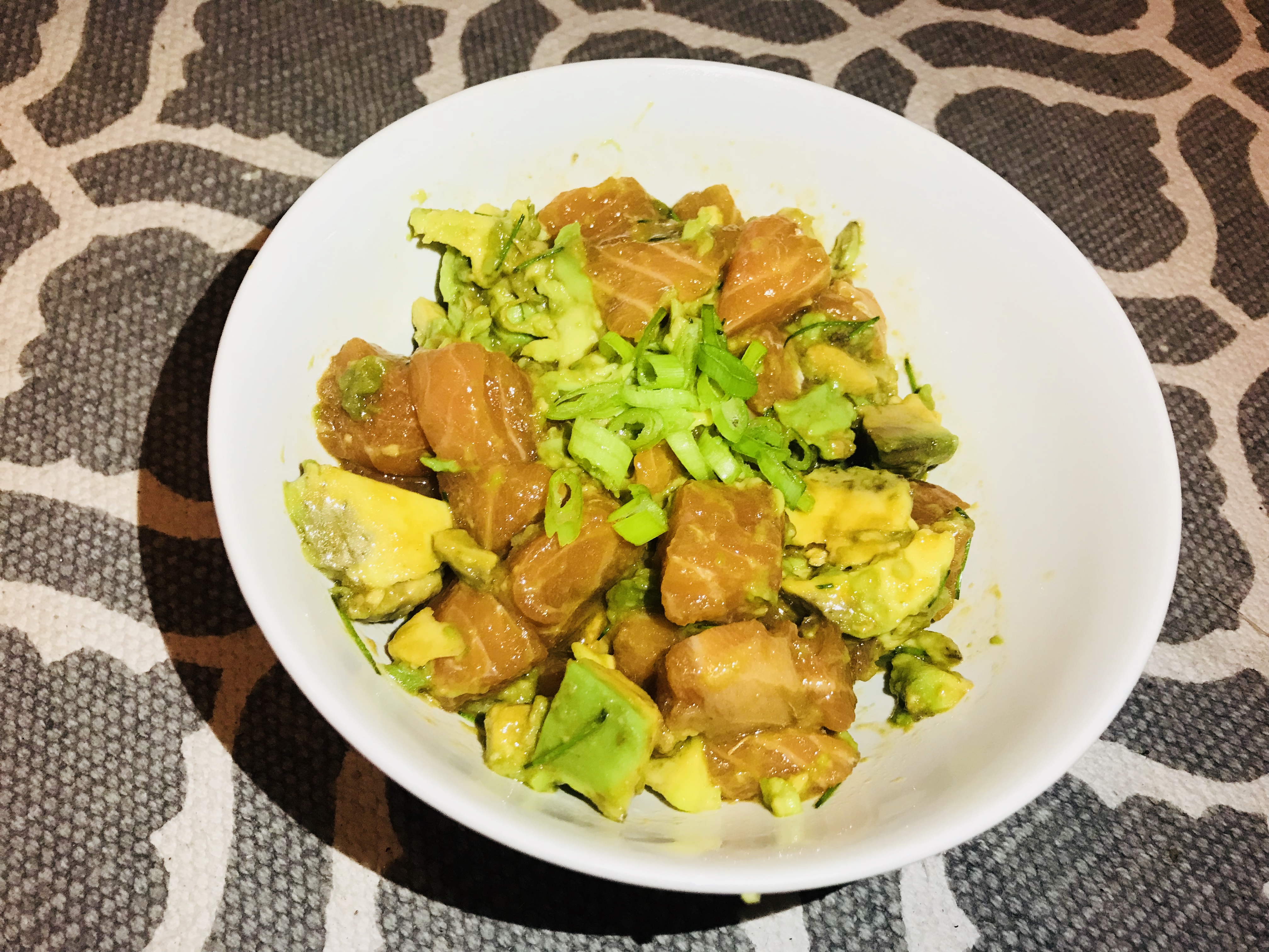 - 200 gr de salmón/atún (descongelado, mejor comprado en lomos)