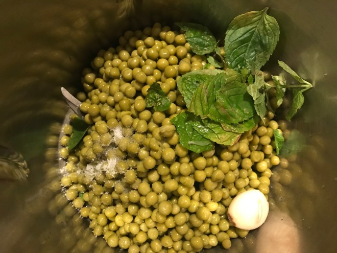 - 1 lata/bote grande de guisantes cocidos con el menor n° de aditivos posible (también pueden ser de los congelados)