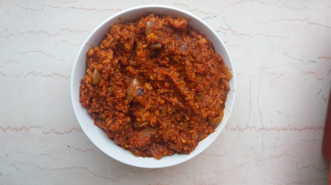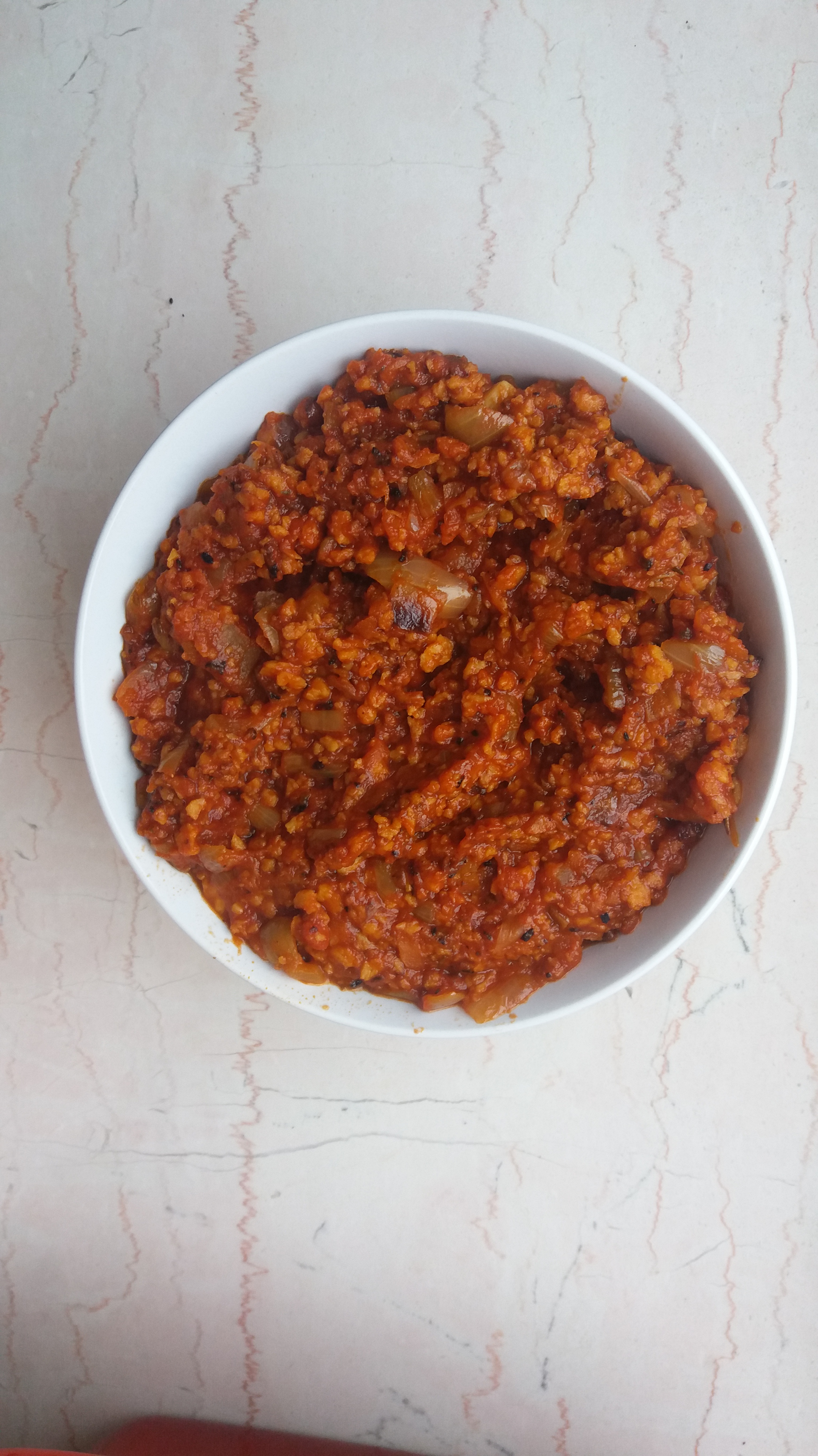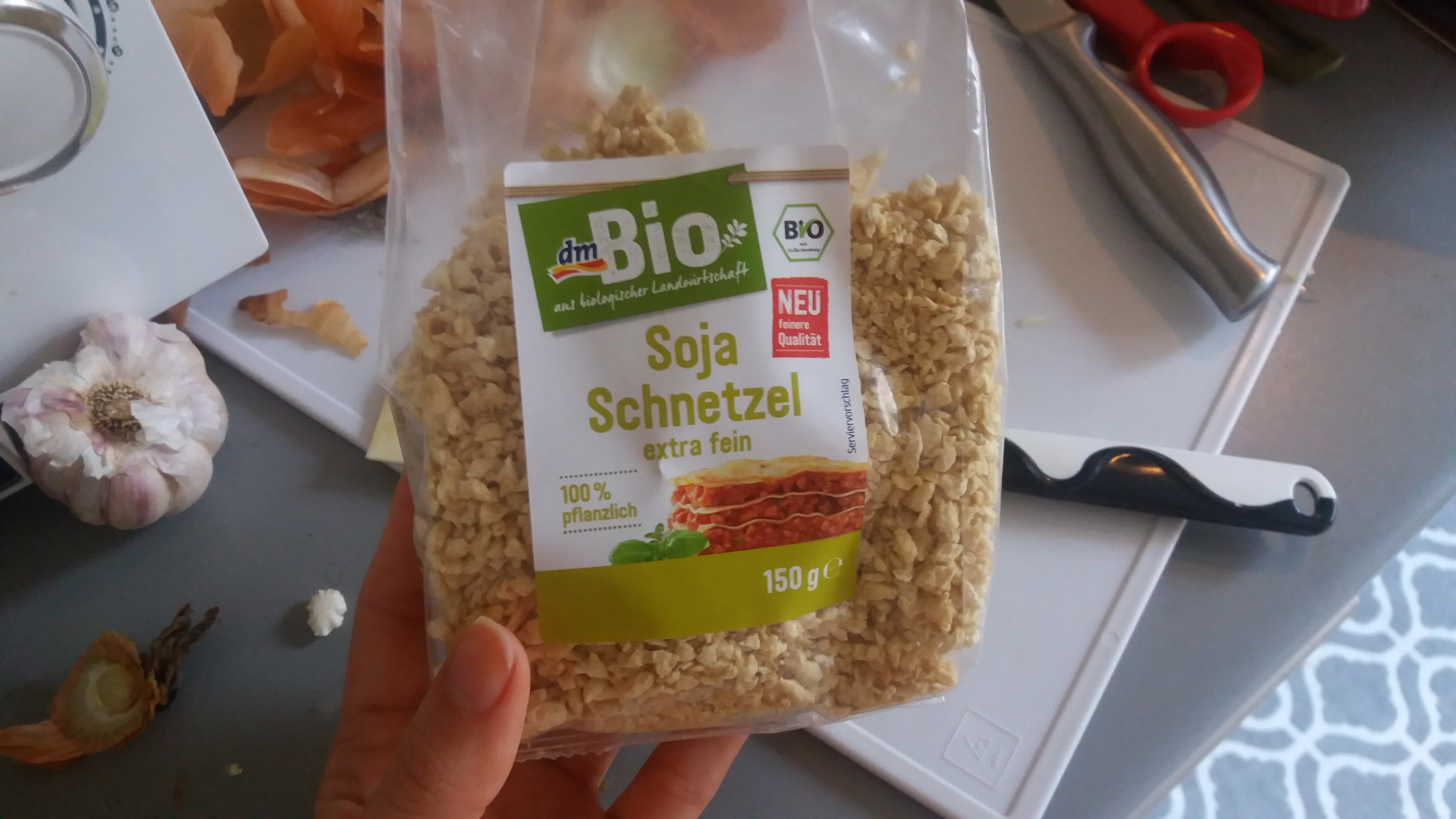 - 150 gr de soja texturizada (de venta en mercadona aparte de herbolarios etc; mejor fina que gruesa, nos ahorramos triturarla después – ver fotos debajo; en el post sobre la soja os explico lo que es)