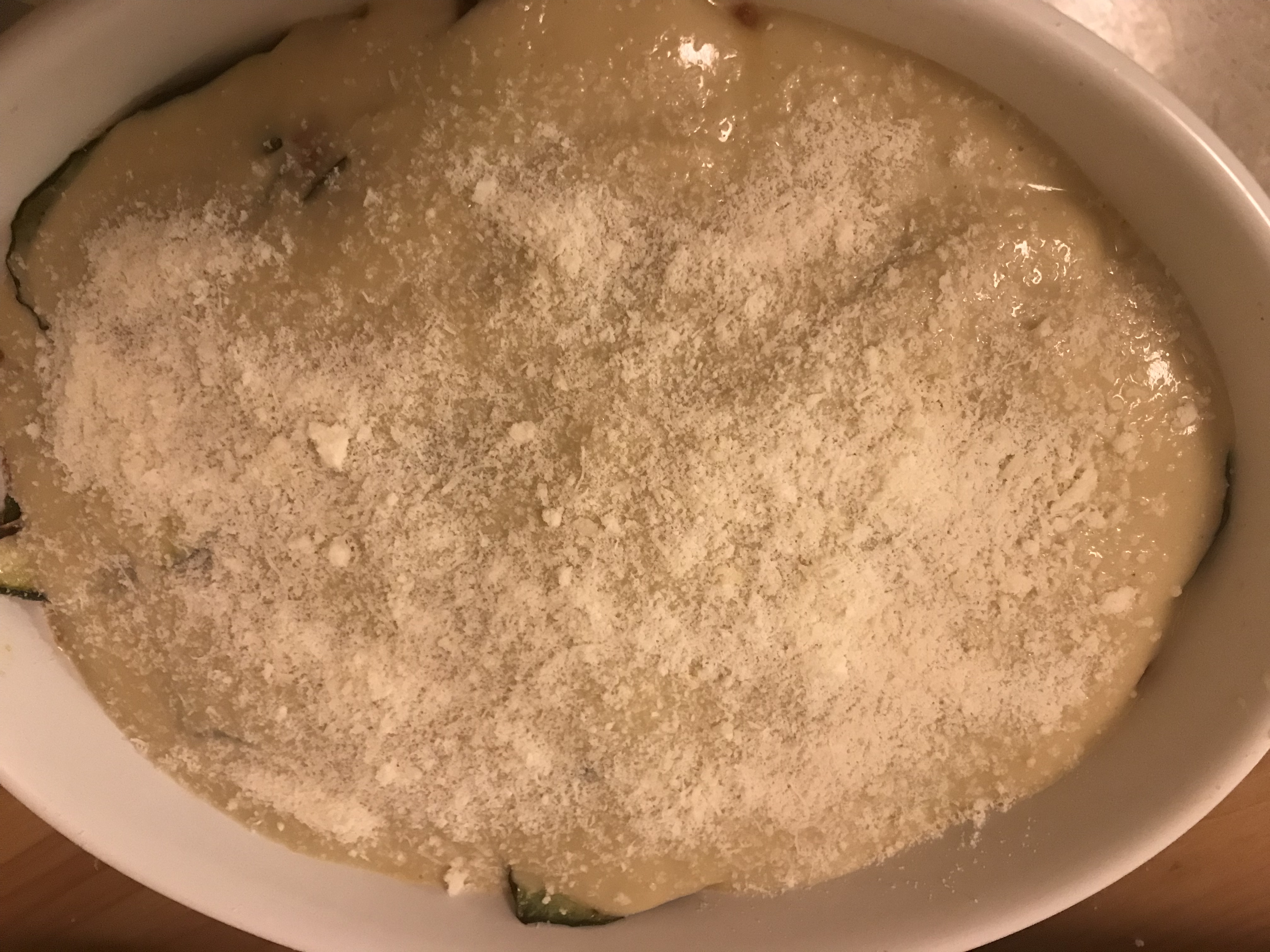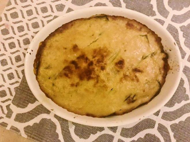 ➡ No os recomiendo dejarla montada entera de antemano porque el calabacin suelta agua y nos puede quedar el plato entero aguado.