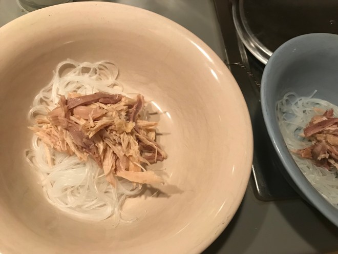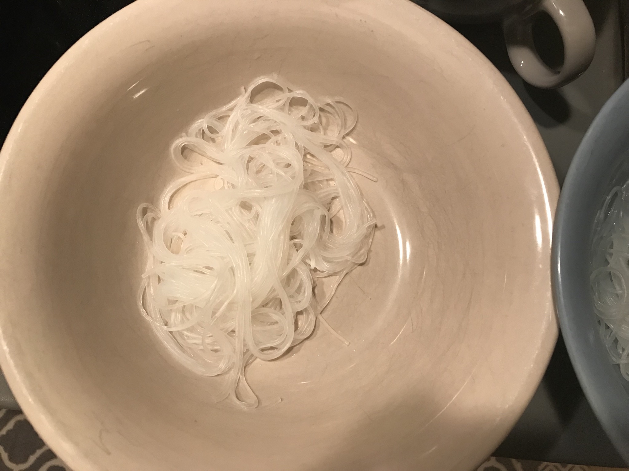 - 1 nido de fideos de arroz (detalles arriba) o bien fideos de sopa normales