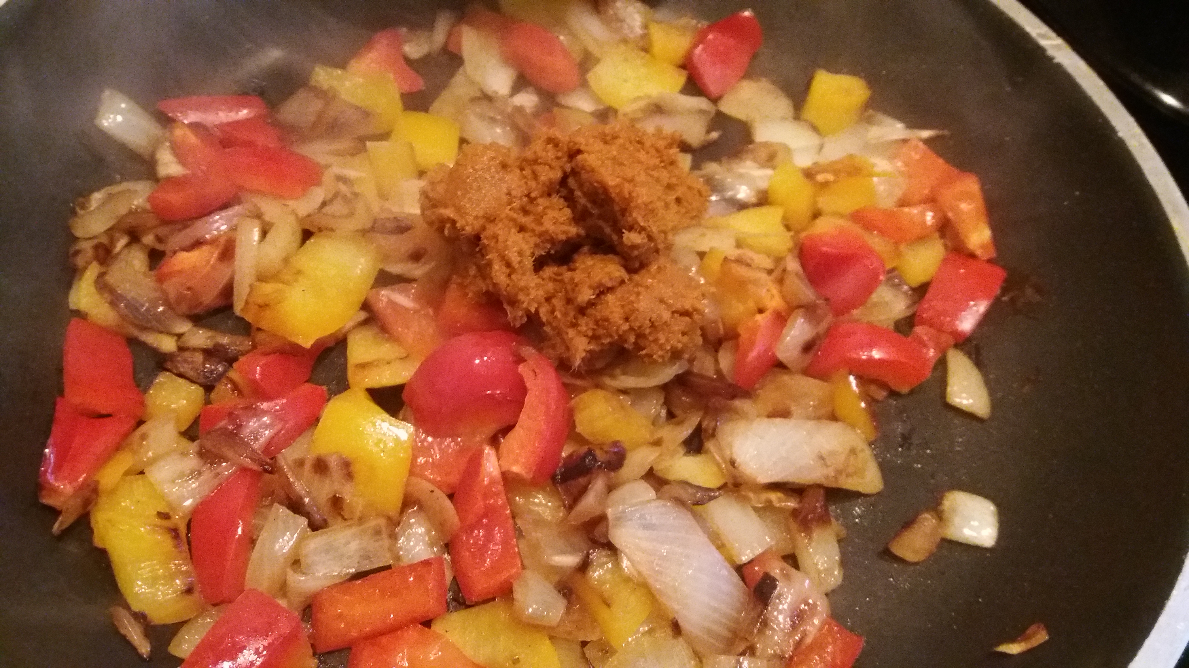 Incorporamos la pasta de curry y removemos, 1 minuto.