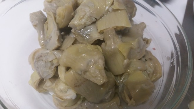 - 1 bote de alcachofas en aceite (mejor que las de conserva, ya que el sabor ácido del conservante personalmente no me gusta)