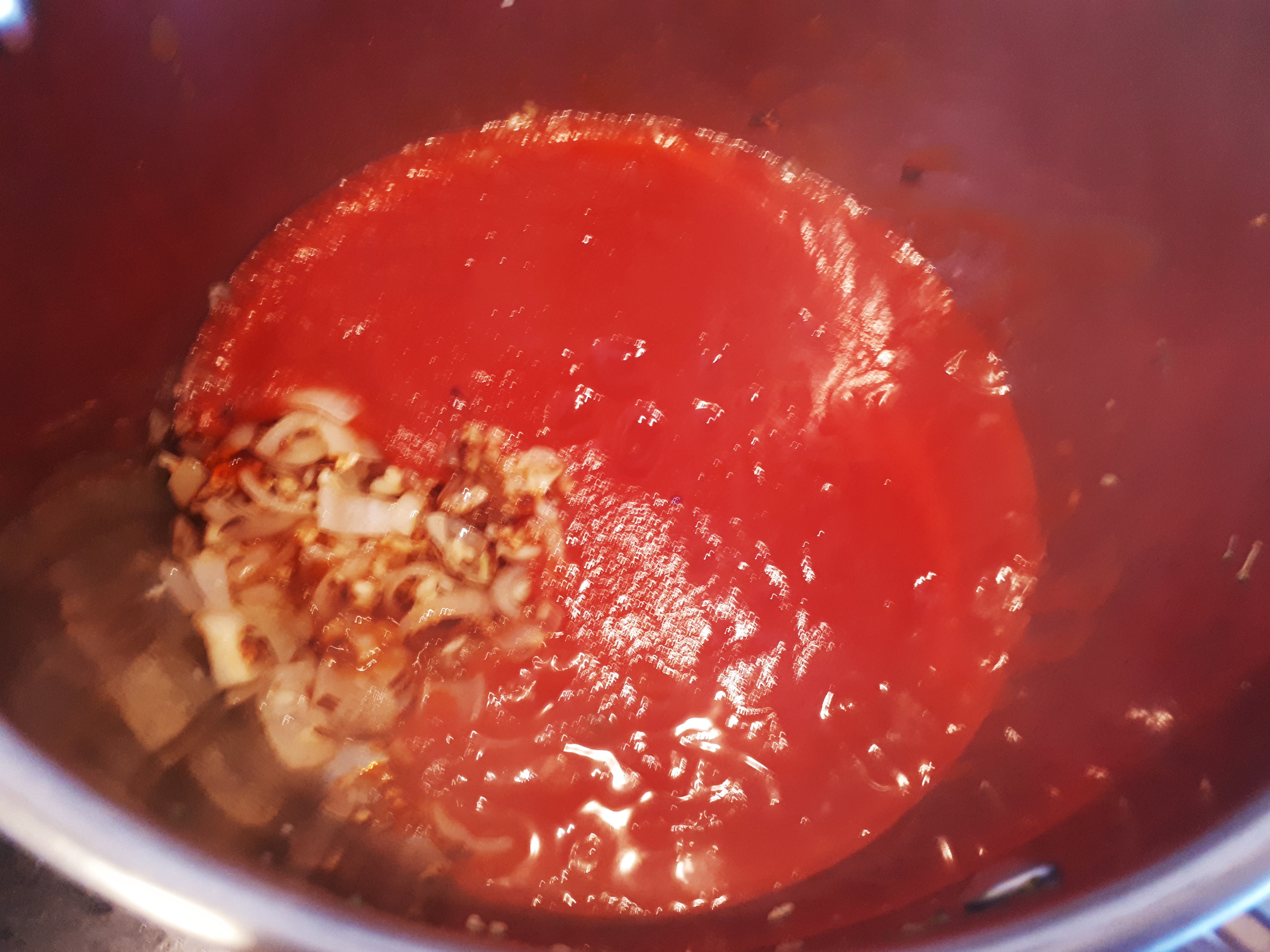 Agregamos el tomate y el laurel y lo dejamos otros 5 minutillos desde que empieza a hervir. Tapadlo porque salpica mucho!