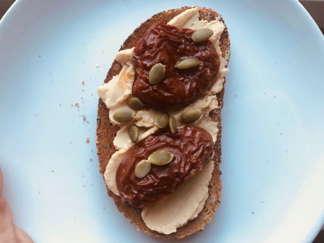 Cuando tengamos el hummus, tostamos nuestro pan y untamos con la mezcla anterior.
