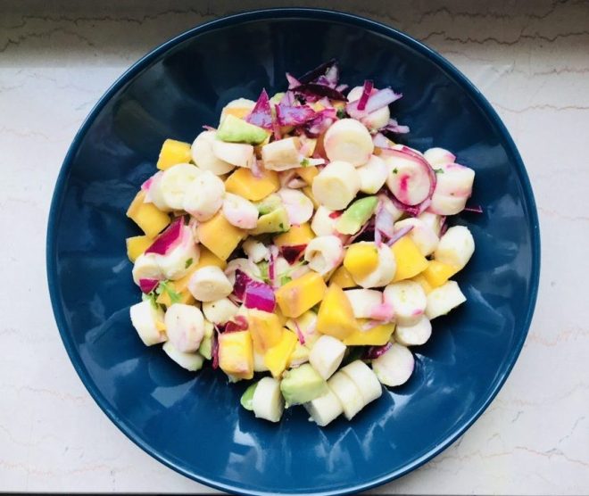 Me sorprendió ver un ceviche vegetal (ya sabéis que los ceviches se preparan con pescado), y después de haberos contado mi súper experiencia con un ceviche no crudo (el de los mejillones de lata) me dije “esto tengo que memorizarlo y replicarlo 100%!”.