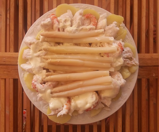 - 8 espárragos blancos cocidos (lo más grandes posible)