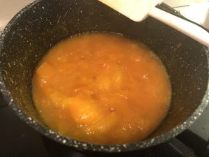 Si no os gusta encontrar trozos en la mermelada, es el momento de que la trituréis con una batidora. En mi caso no lo hice porque me gusta encontrar trocitos 🙂 .