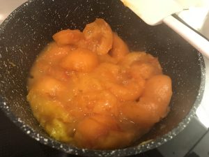 Colocamos los albaricoques/ melocotones en un cazo y lo ponemos a fuego máximo .