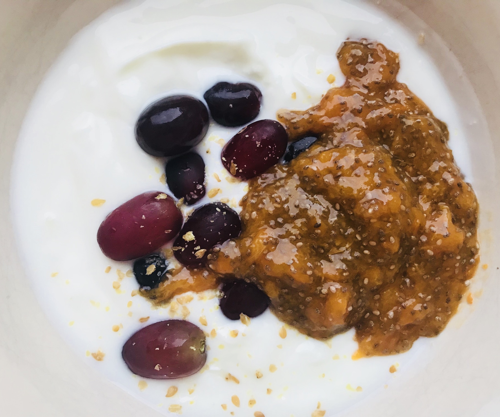 Fruta = fibra, vitaminas, minerales y agua; semillas de chia = grasas saludables, proteínas, vitaminas y minerales. Algo más?