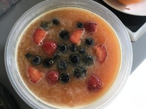 Agregamos los frutos rojos en cada molde. Seguramente floten, esto es normal!