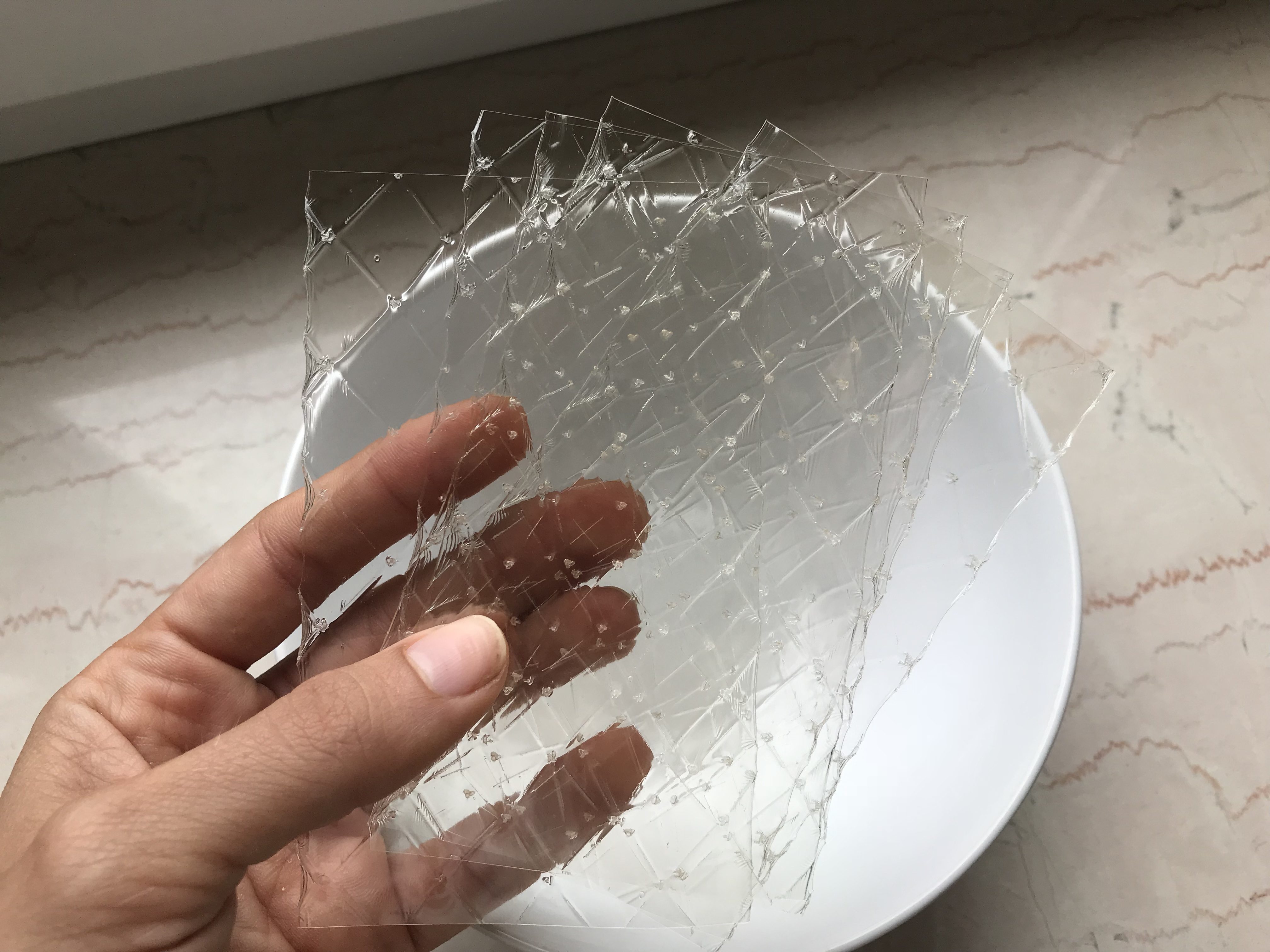 - La gelatina vegetal procede del alga agar agar. Tiene por tanto las propiedades generalmente beneficiosas de las algas (mucho yodo, fibra). Es muy difícil que encontremos gelatinas hechas con ella en un supermercado normal. Quizá la hayáis probado en las típicas ensaladas japonesas: son unas tiras transparentes gelatinosas.