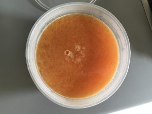 Hacemos el zumo y lo calentamos en el microondas 1-2 minutos, lo suficiente para que esté caliente pero nunca hirviendo (si está demasiado caliente, la gelatina no se formará!).