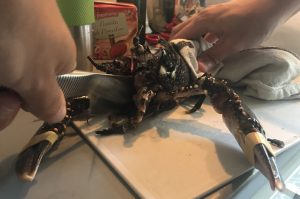 Comenzamos cortando el bogavante por la mitad a lo largo. No tengáis miedo si se mueve, si dejamos de lado que es bastante dramático, no es peligroso.