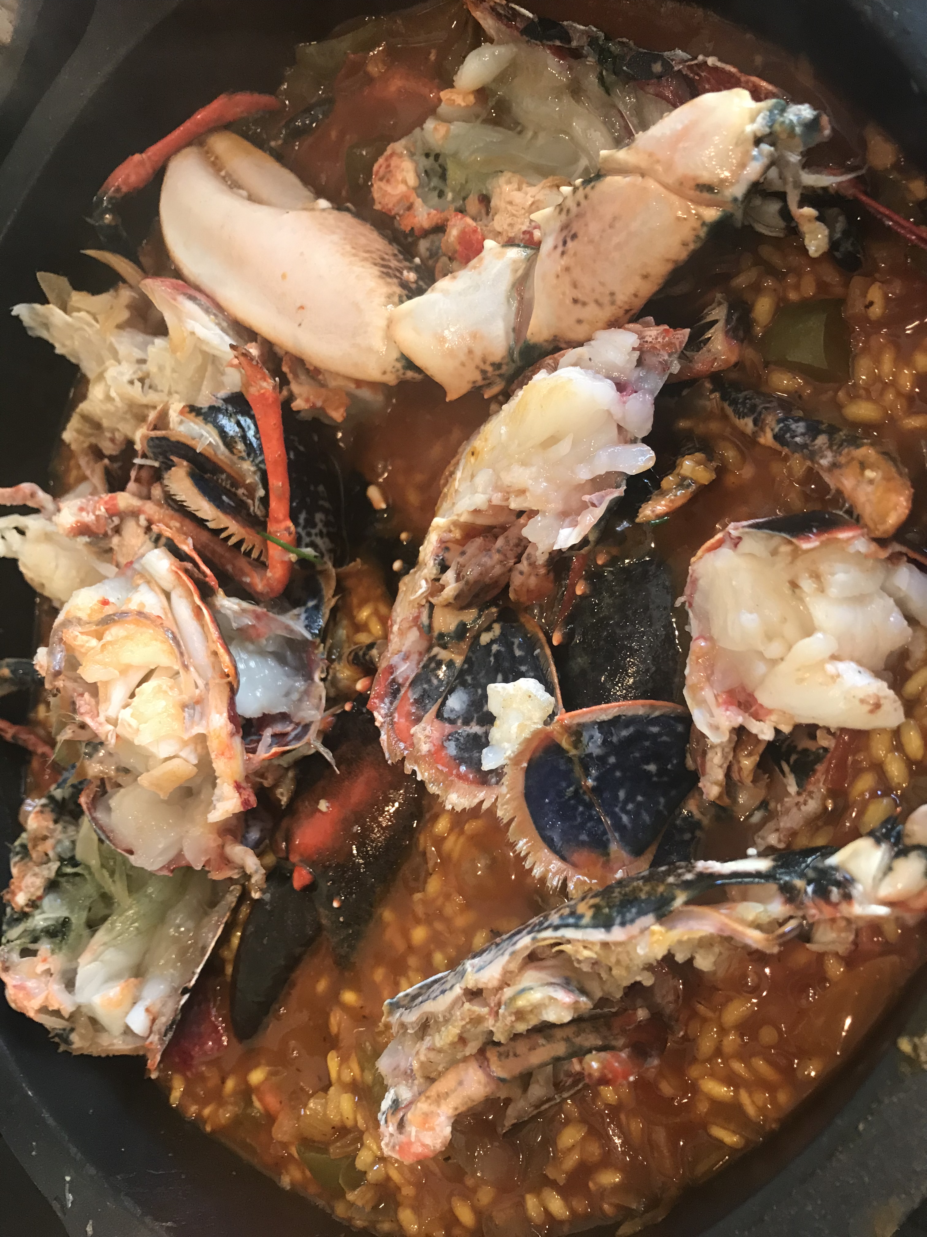 - Tema precio: un bogavante fresco en arroz da para 2 personas y cuesta unos 15 euros (por tanto, 7,5 euros por cabeza). No es lo más barato del mundo, pero nos sorprendió positivamente dados los precios del pescado en general y considerando que un arroz con bogavante en cualquier sitio no baja de 40 euros por cabeza y te ponen un minitrocito del bicho. El precio del bogavante congelado tengo entendido que es similar.