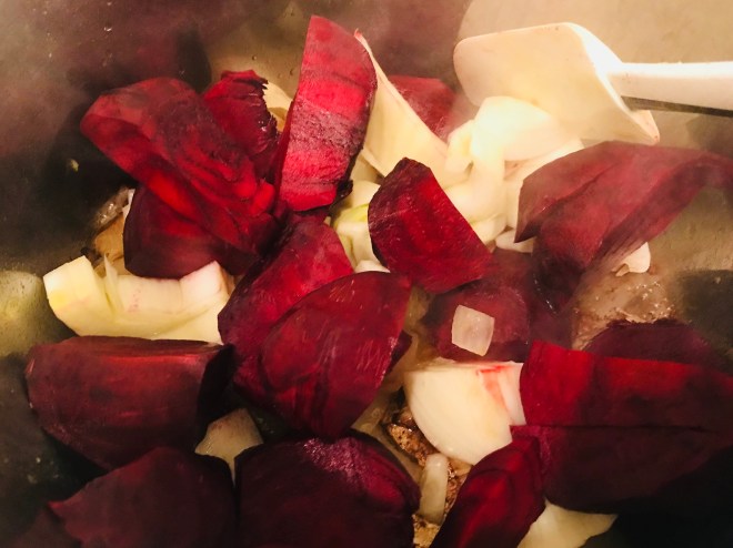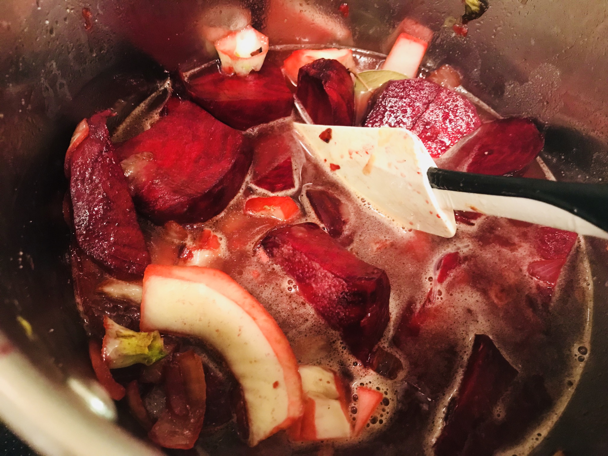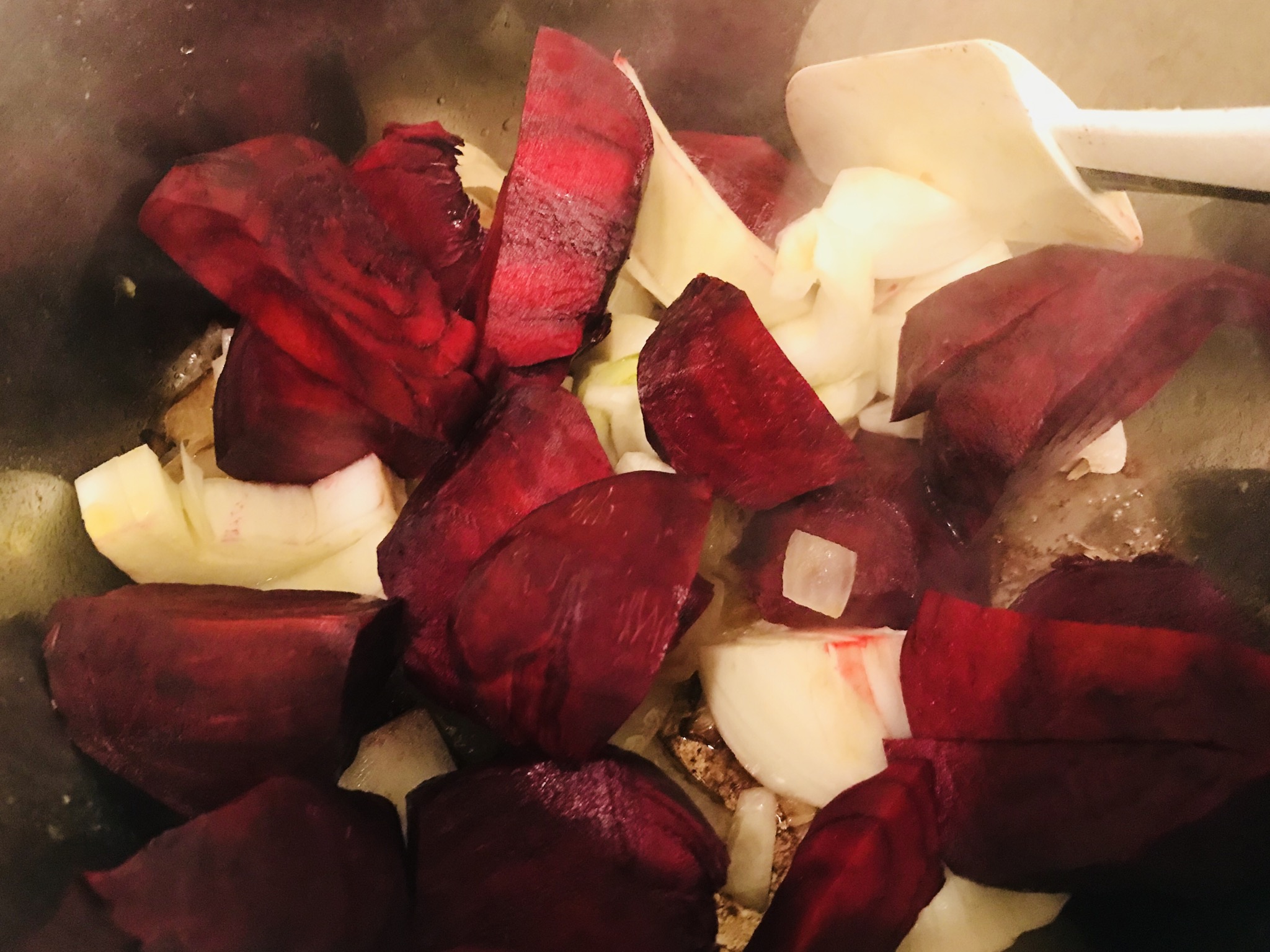 Pues bien, en mi afán por probar cosas nuevas, me animé a comprar unas cuantas remolachas crudas y también un hinojo (otro vegetal poco utilizado en España, sobre todo en su formato crudo, le da un toque anisado súper interesante a la crema pero podemos sustituirlo por una patata o por la versión en semillas). El resultado ha sido de las cremas más deliciosas que jamás haya probado (si tuviese que hacer un top 5, sin duda entraría dentro!!!).