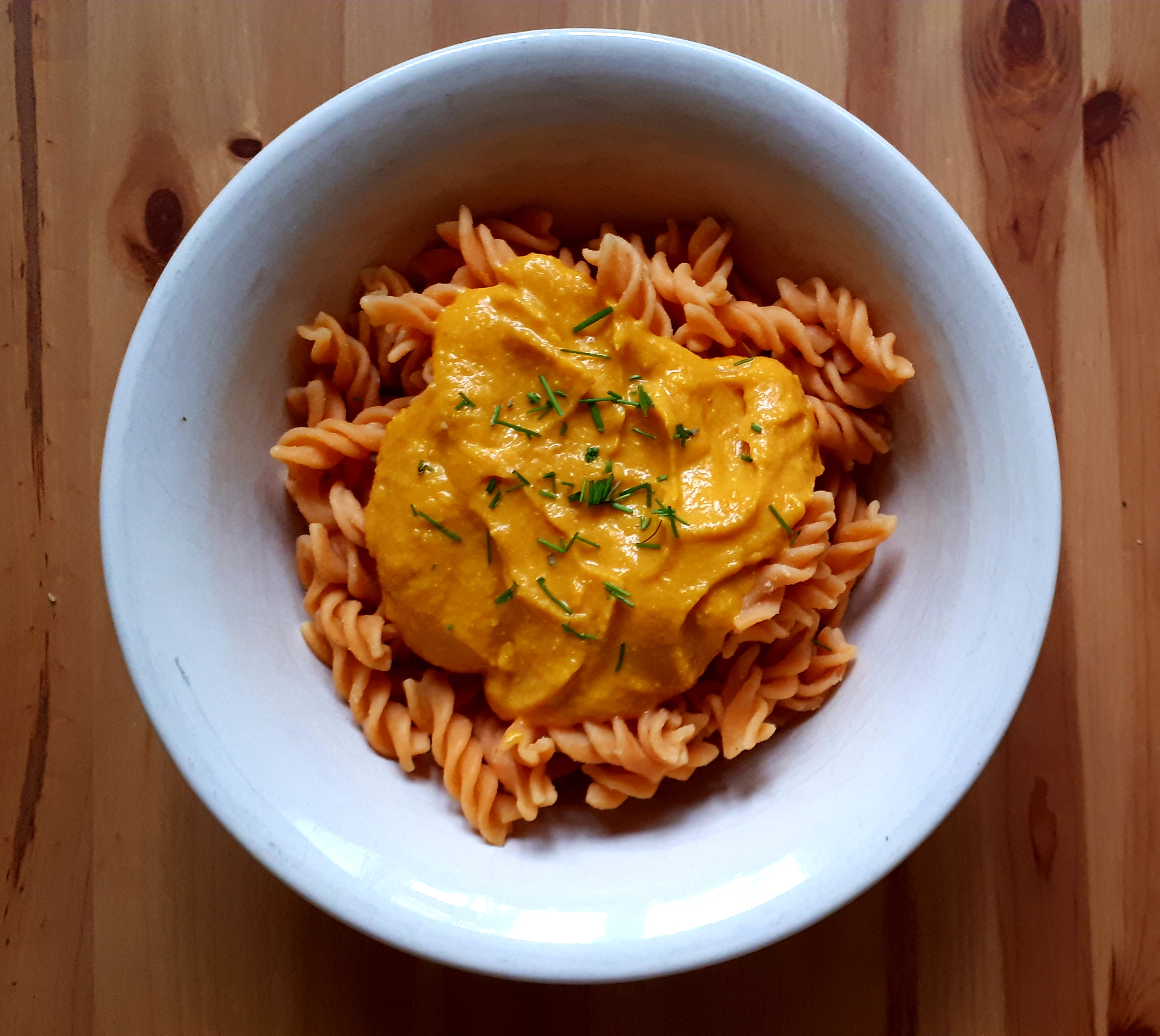 A lo que vamos, para celebrar este día «en mi faceta virtual» he escogido una recetita muy otoñal. Cogí la idea de la estupenda Deliciously Ella un día que no sabía qué más hacer con restos de calabaza asada jejeje. Es una pasada, la textura de la salsa es híper cremosa y el sabor a queso es brutal! Me recuerda muchísimo a la típica salsa de queso cheddar que venden para dipear con nachos (con la obvia diferencia de que los ingredientes no son precisamente «tan saludables» jejeje). NO DUDEIS HACER ESTA SALSA PARA NACHOS, quizá poniendo más queso rallado para que sea mas fuerte.