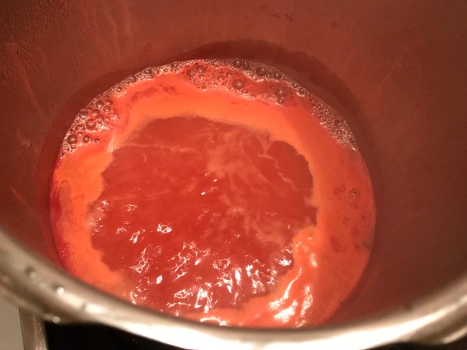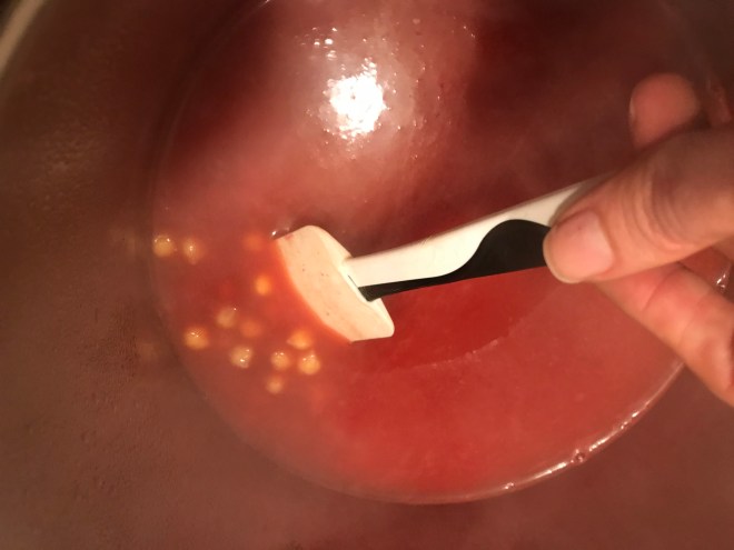 En una cazuela ponemos a calentar el agua con el tomate. Para acelerar, podemos calentar el agua previamente en un hervidor/kettle.