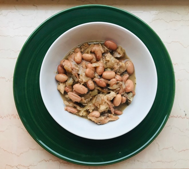 Este es, por tanto, mi intento de réplica que estaba IMPRESIONANTE, no es por nada, jejeje. Básicamente consiste en tomar mi receta del escabeche tradicional, cocer las alubias por separado (o comprarlas ya cocidas) y mezclarlo todo.