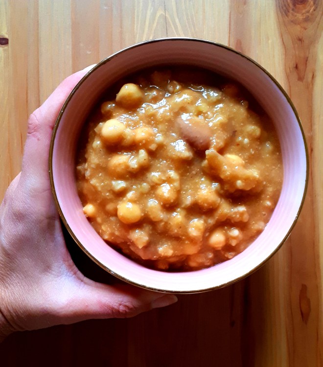 De ahí surgió la receta de hoy, que podéis tunear a vuestro antojo poniendo las legumbres, cereales y verduras que tengáis/queráis, incluso podéis hacerlo con legumbres de bote ya cocidas (reduciendo los tiempos que sugiero, evidentemente).
