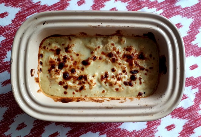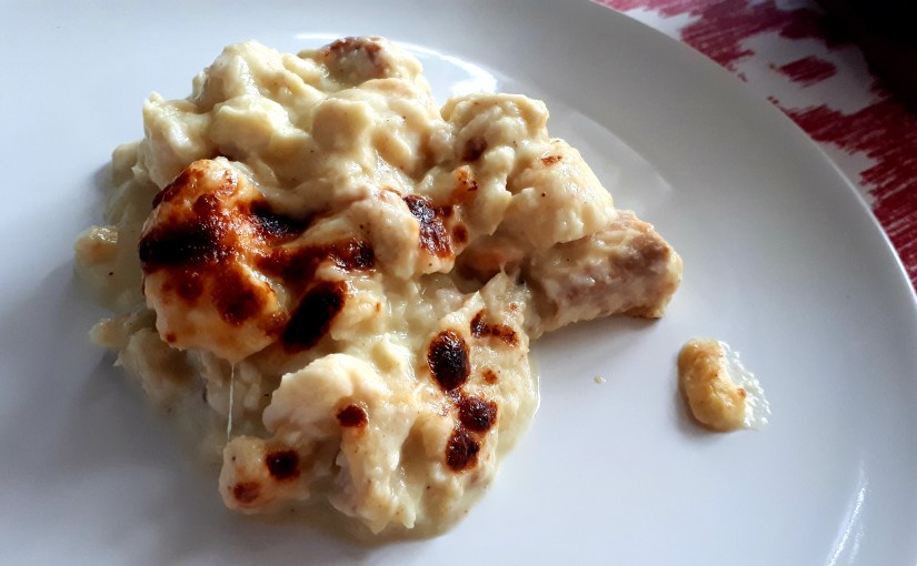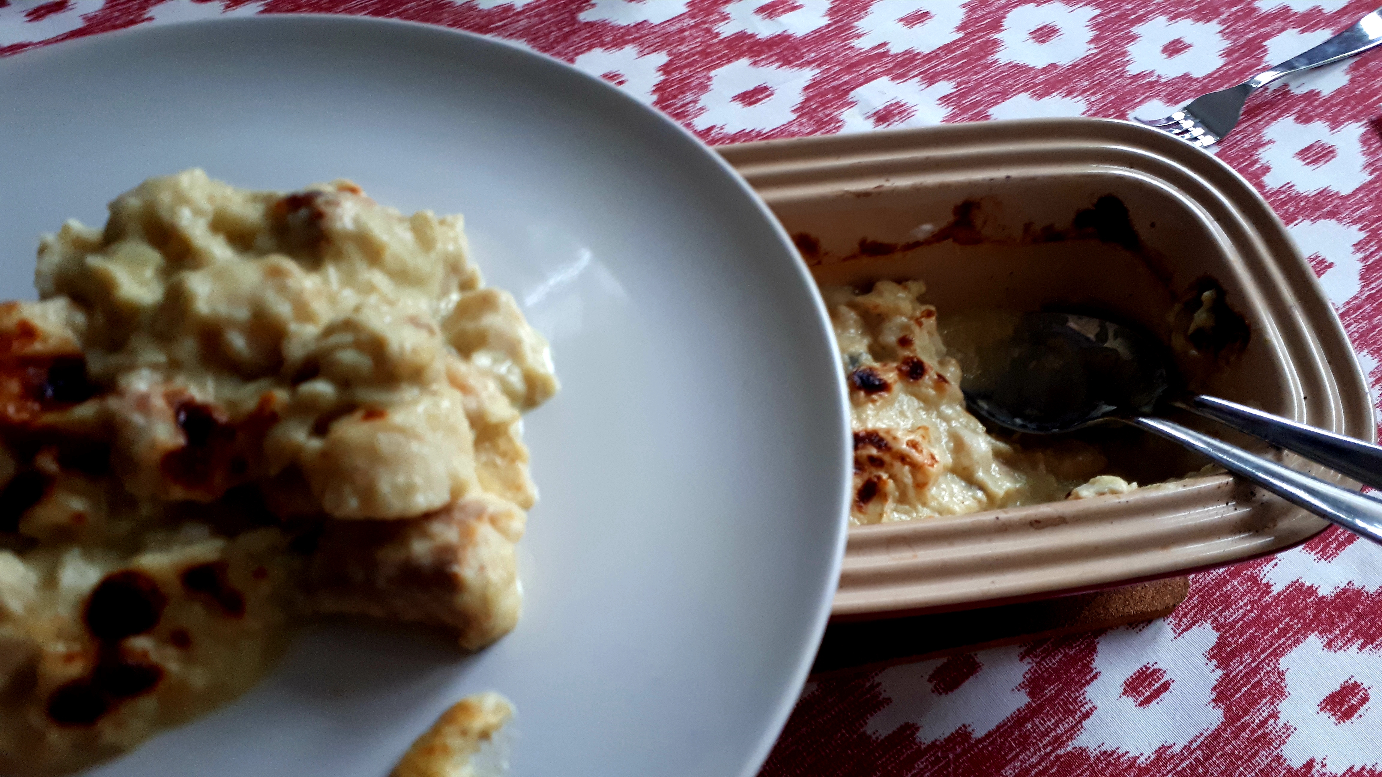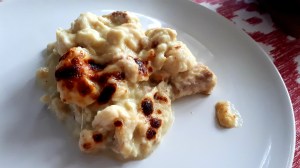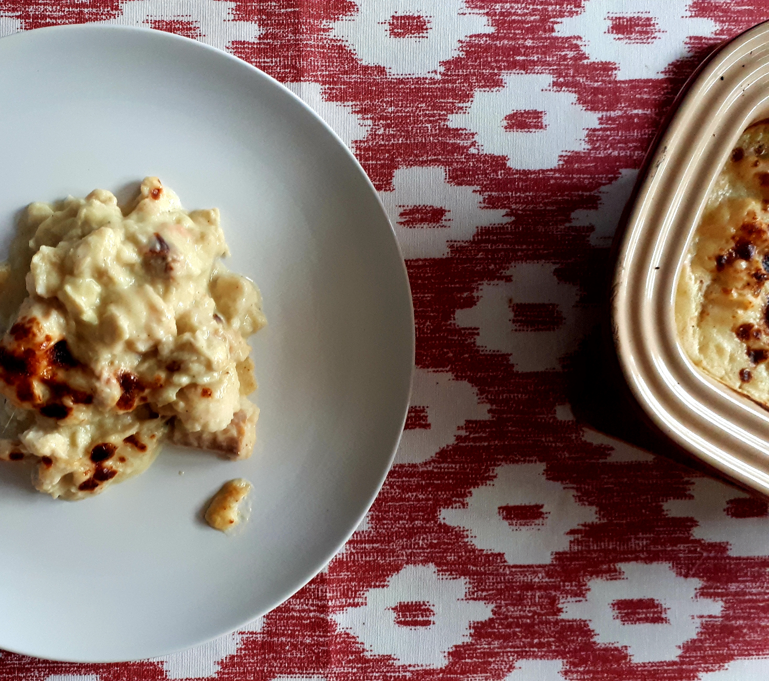 Ella la sirve en conchas de vieira, que queda precioso, pero aquí en Luxemburgo únicamente he podido encontrar vieiras separadas de su concha y por ello le he dado el formato “pastel”. No dudéis presentarlo en conchas si podéis, aunque el sabor evidentemente es el mismo 🙂 .
