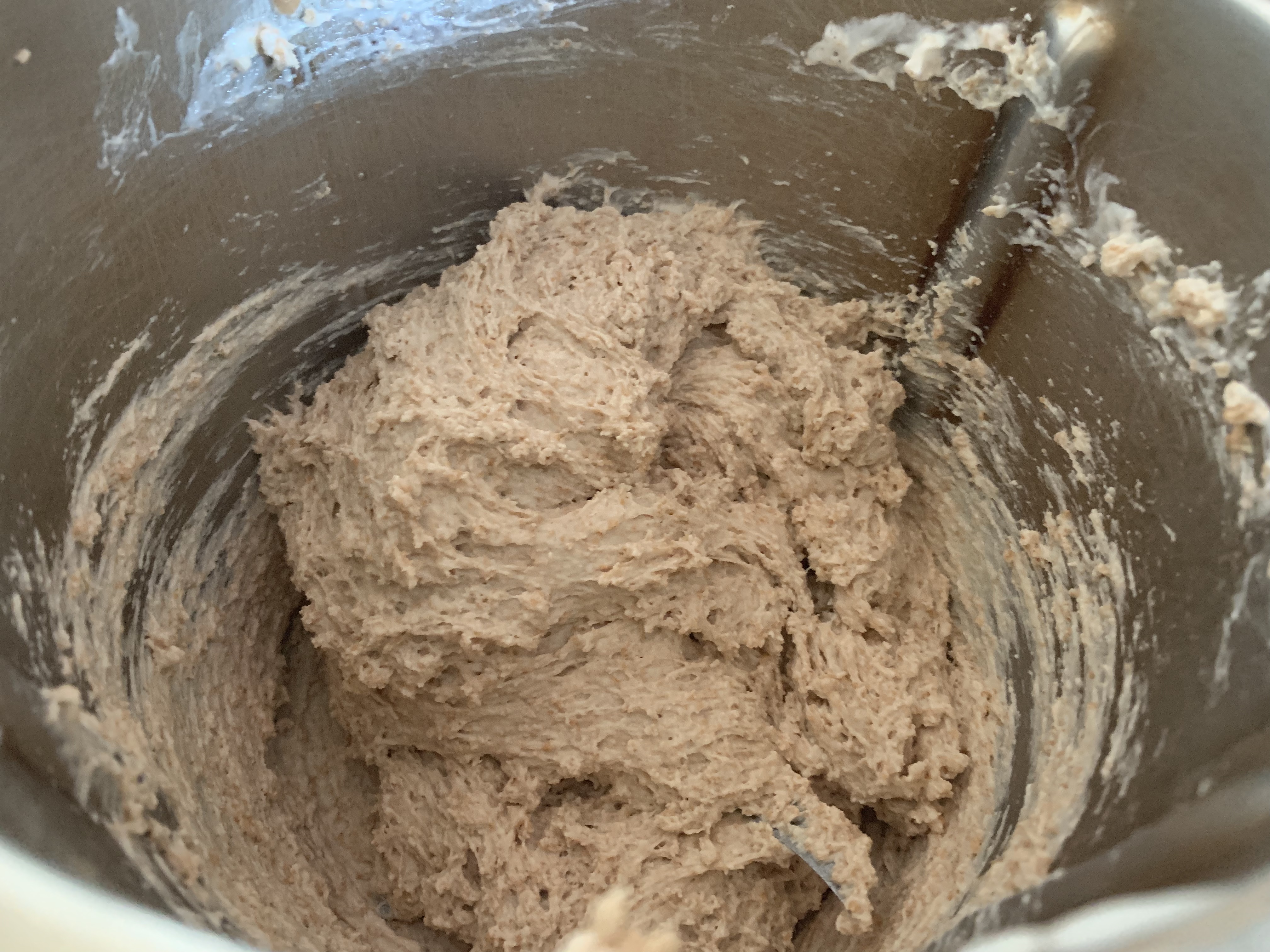 Comenzamos a mezclar todo con un tenedor, y cuando esté medio integrado pasamos a trabajar con las manos, hasta que la masa esté lisa y podamos formar una bola. En unos 3 minutos estará lista.