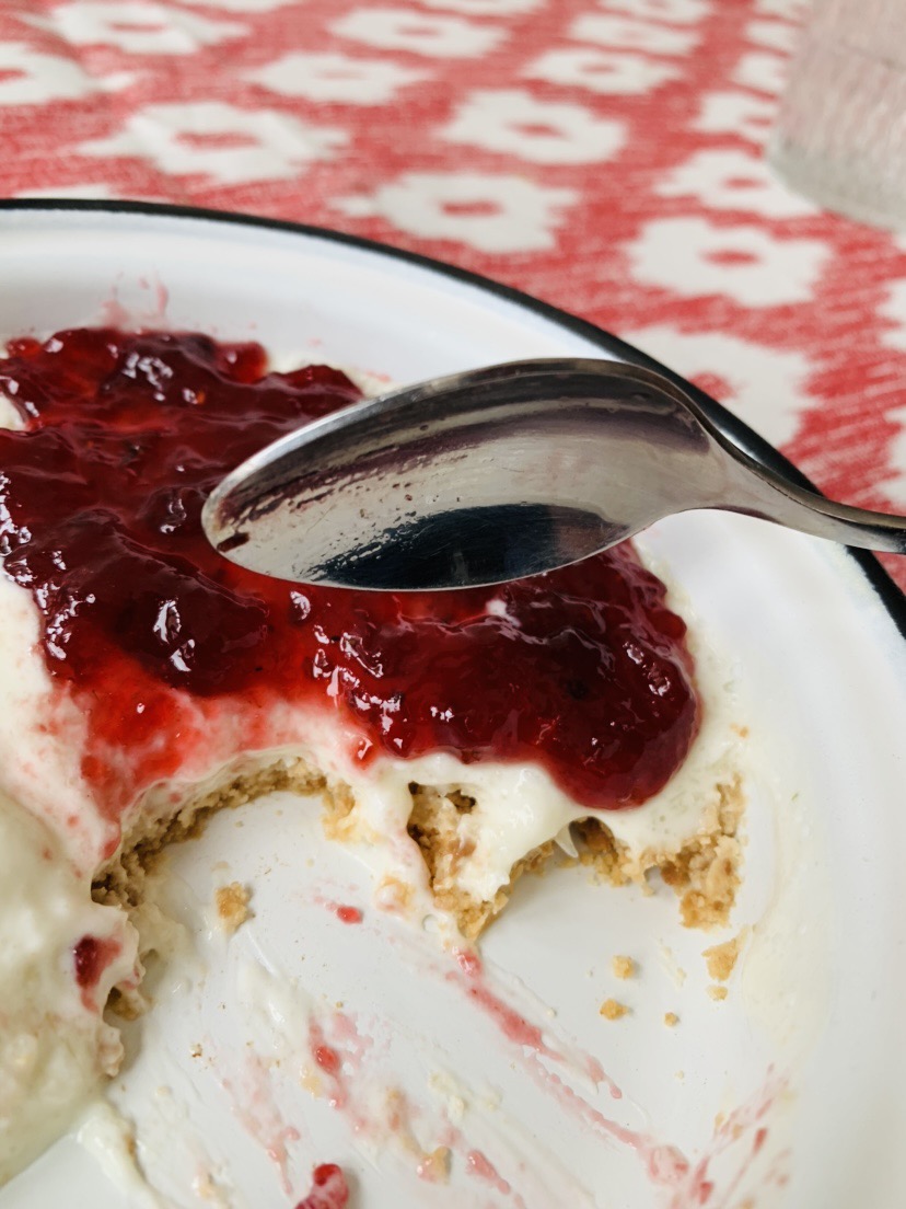 Pues bien, la de hoy se cuaja en la nevera, no puede ser mas fácil, deliciosa y SALUDABLE!!! Únicamente tiene un ingrediente “sospechoso” que son las galletas maria de la base, que podéis sustituir por frutos secos y avena triturados y tostados si no queréis usarlas.