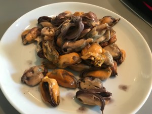 - 1 kg mejillones (peso si son crudos y con cáscara), o bien 200-300 gr si los compráis ya cocidos o sin cáscara
