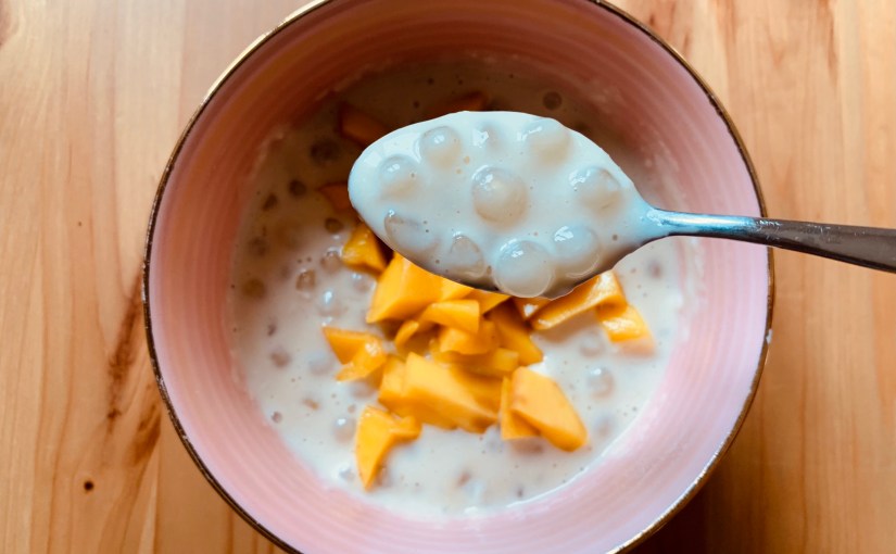 Os recomiendo que lo probéis lo antes posible! Eso sí, se tiene que dar la circunstancia de que no os molesten las texturas algo gelatinosas (por la tapioca, ahora os daré más detalles!) y que os guste el coco. Si es tu caso, de verdad no dejes de hacer esta receta porque es todo un placer…