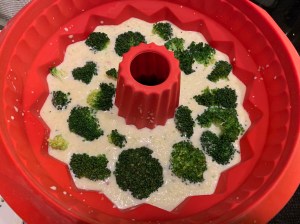 Desmoldamos con cuidado una vez que esté templado, y dejamos del lado que prefiramos (que quede a la vista el jamón o el brócoli).