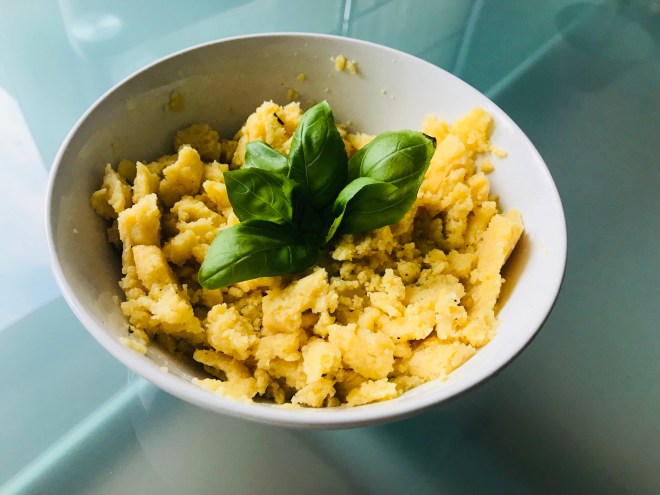 Removemos muy bien, añadimos la mantequilla y seguimos removiendo durante 4 minutillos a fuego medio (no abandonéis la polenta si no queréis fabricar cemento en casa…).